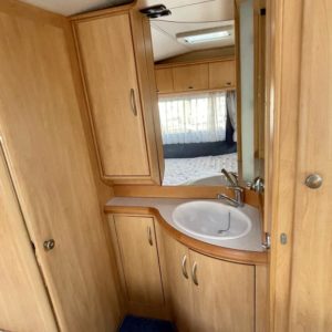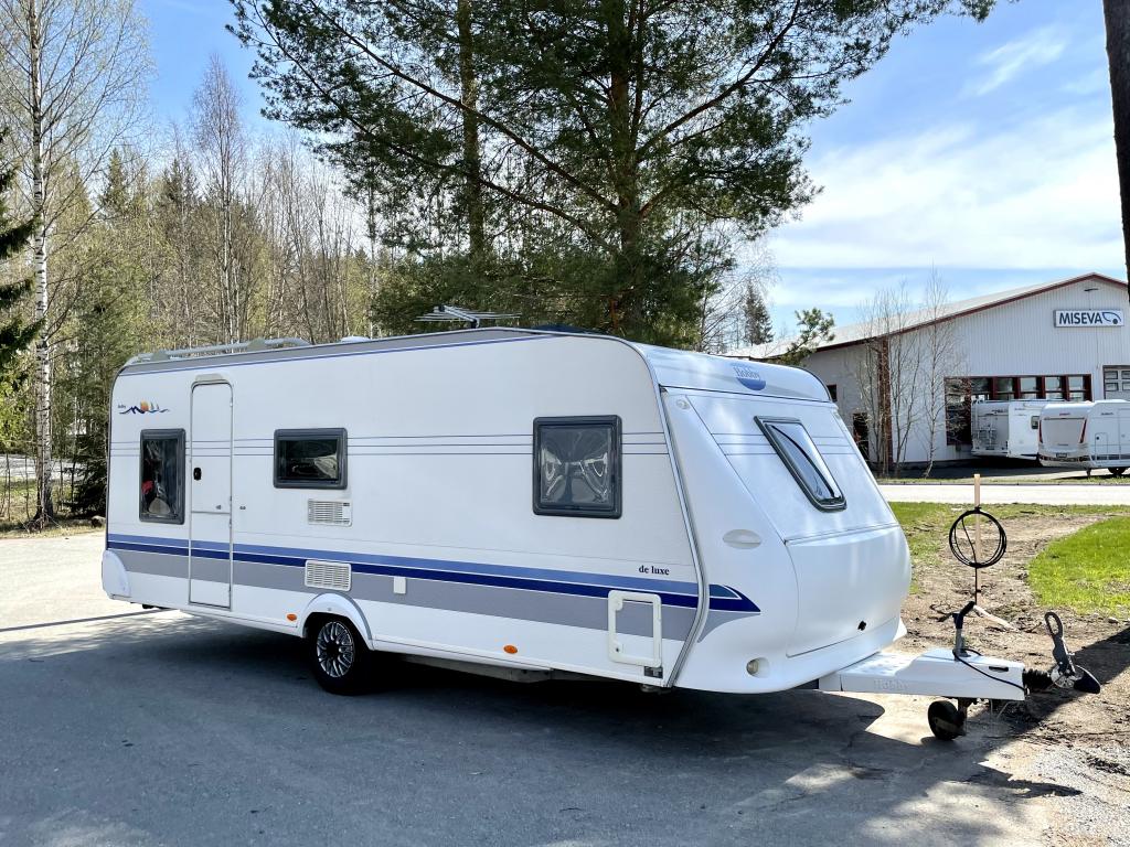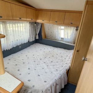 Makuupaikat jopa kuudelle hengelle. Vaunussa takaosassa kerrosvuoteet, keskiosassa tilava sohvaryhmä laskettavalla pöydällä ja keittiö, jossa liesi, mikro sekä jääkaappi pakastinlokerolla. Etuosassa parivuode sekä Wc & suihku-tila.