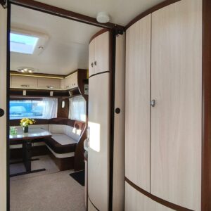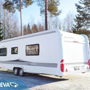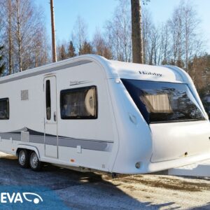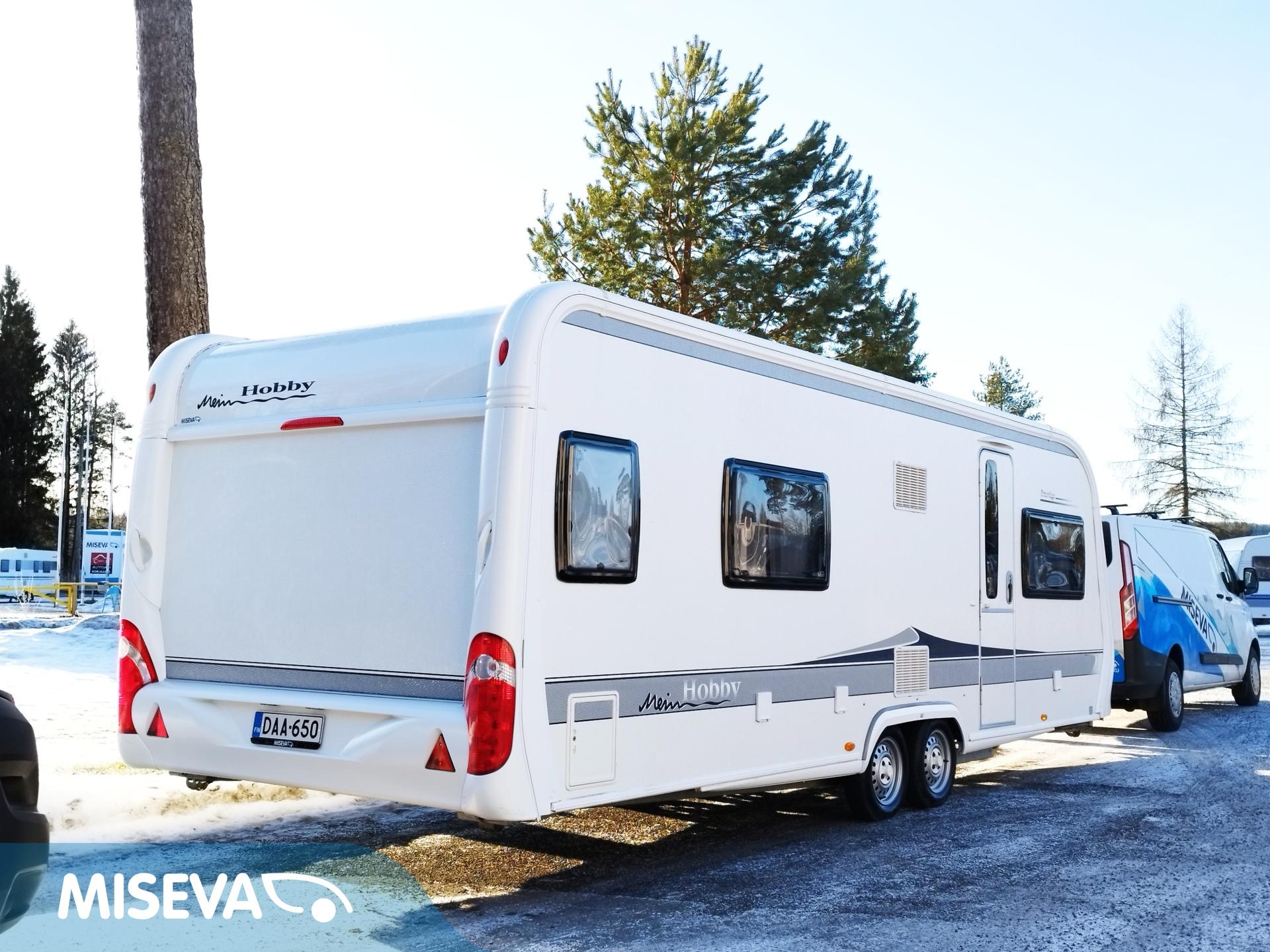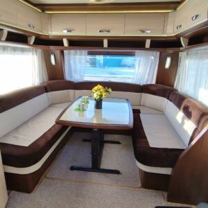 Lähes virheettömässä kunnossa oleva Aldellinen asuntovaunu, minkä sisätilat edustavat erinomaisesti Hobbyjen ajatonta muotoilua ja värimaailmaa.