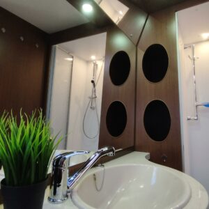 Vaunun kruunu löytyy tällä kertaa aivan perältä, nimittäin kylpyhuoneesta, mitä voisi jo kokonsa puolesta melkein kutsua nimellä Spa.
