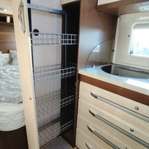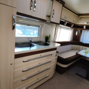 Alde, CD-soitin, Jääkaappi, Kasetti WC, Kasettiverhot, Kattoluukku, Lattialämmitys, Nestekiertolämmitys, Pakastelokero, Parivuode, Pesuallas, Suihku, Sähköpatruuna, TV-antenni tai lautasantenni, Tukijalat