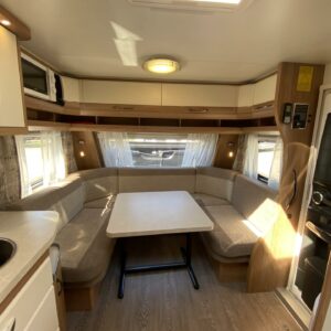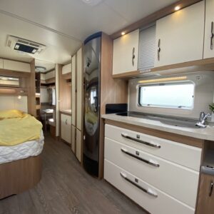 Alde, Ilmastointi: Automaattinen, Jääkaappi, Kasetti WC, Kasettiverhot, Kattoluukku, Kerrossänky, Liesi, Lämminvesiboileri, Markiisi, Mikroaaltouuni, Nestekiertolämmitys, Pakastelokero, Parivuode, Pesuallas, Suihku, Sähköpatruuna, Tukijalat, Lattialämmitys (nestekierto), Kesärenkaat, kwh-mittari, kaasun ulosotto