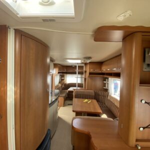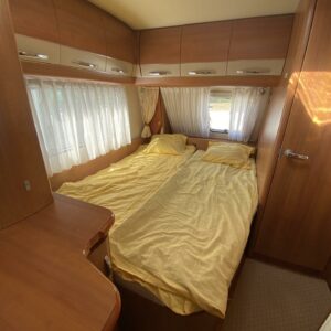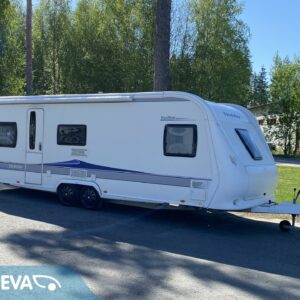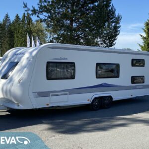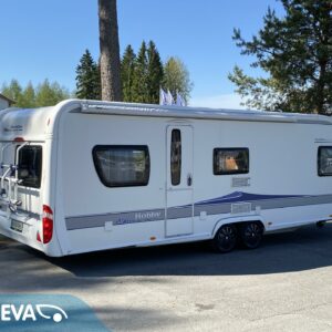Hobbyn siisti telivaunu mikä tarjoaa 3-huonetta + keittiö ratkaisun pyörillä tien päälle. Kaikki kolme osastoa saadaan väliovien avulla eroteltua eri osastoiksi. Ihanteellinen tilanne esimerkiksi iltaisin ennen nukkumaan menoa. Vaunun etuosaan on sijoitettu pitkittäinen parivuode, sekä WC/kylpyhuone. Vaunun keskiosasta löytyy sitten U-ryhmä mistä saadaan sijattua vuode kahdelle henkilölle. Toiselta puolelta löytyy keittiö normaalilla matkailuvaunun keittiö varustuksella. Takaosa on pyhitetty lasten valtakunnaksi ja sieltä löytyy kerrosvuoteet, sekä L-ryhmä mistä saadaan vielä yksi lisävuode. Lämmitysjärjestelmänä on Trumaticin ilmakeskuslämmitys ja lisäksi vielä sähköinen lattialämmitys. Muista varusteista mainittakoon kaasupulloille automaattinen pullon vaihtaja, pyöräteline, sekä markiisi.