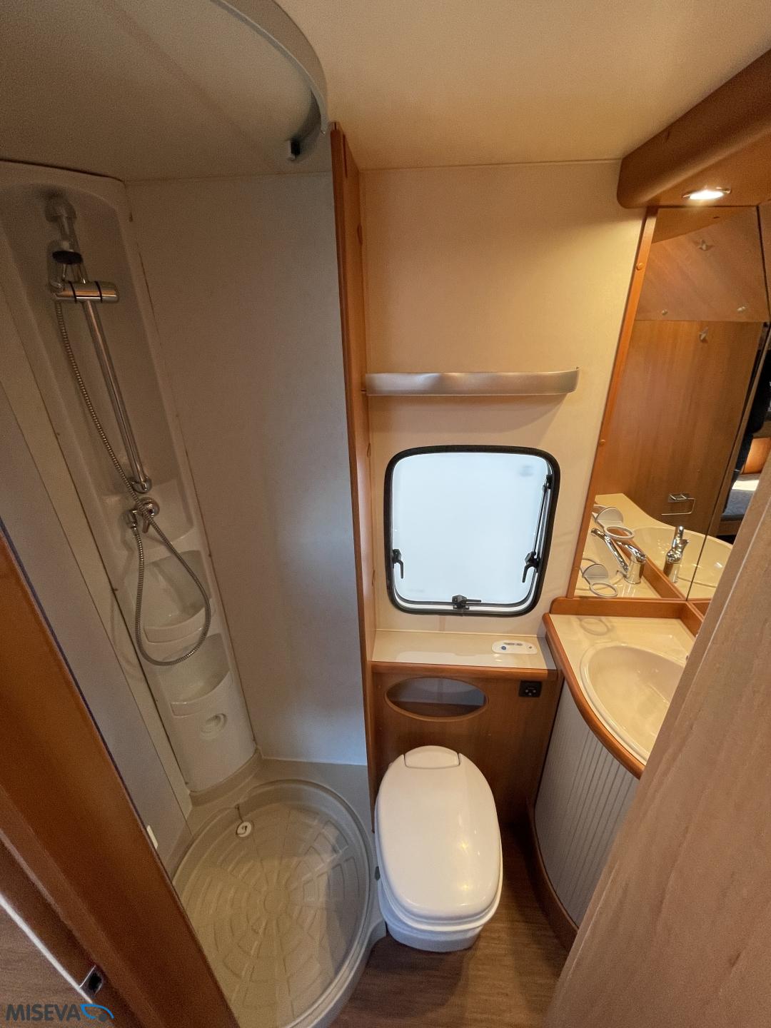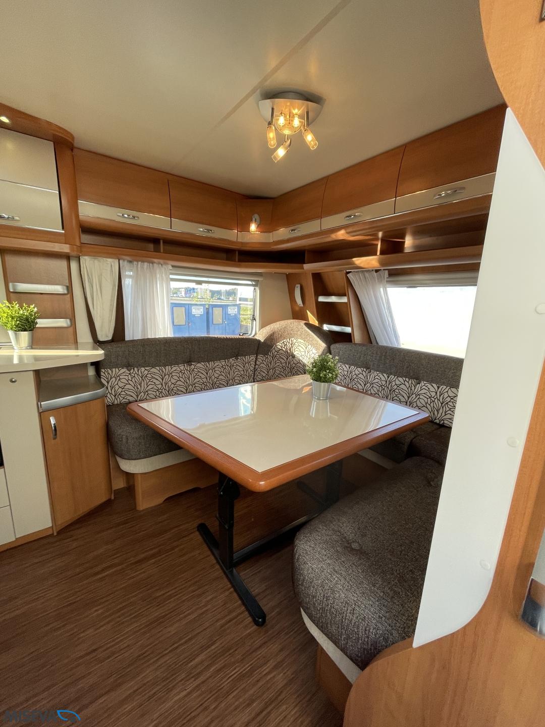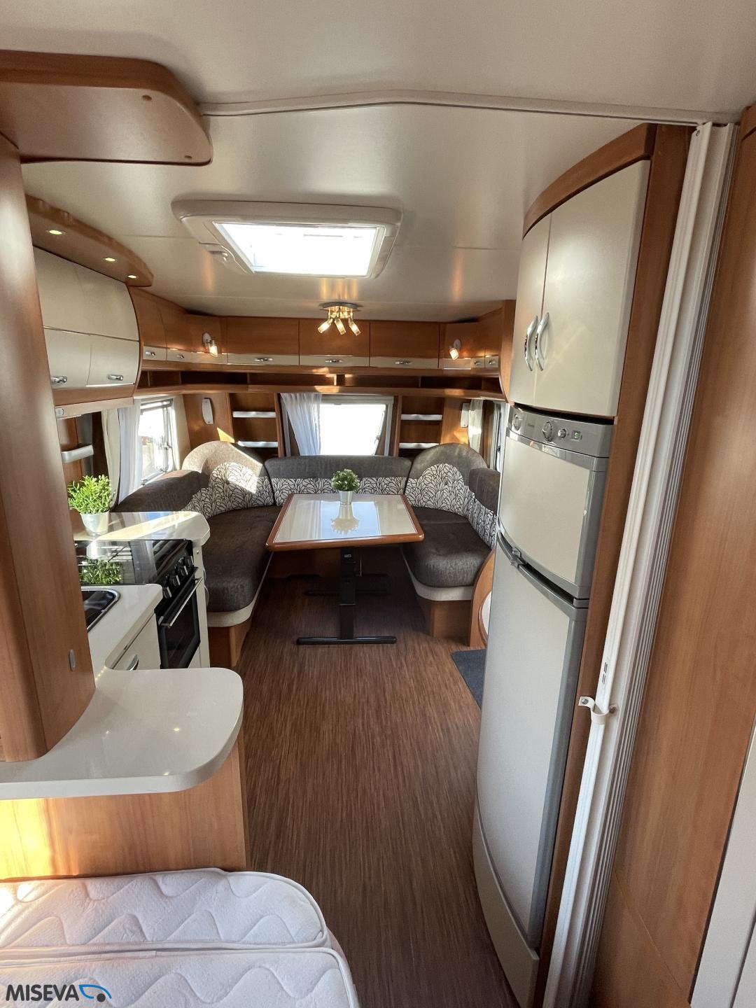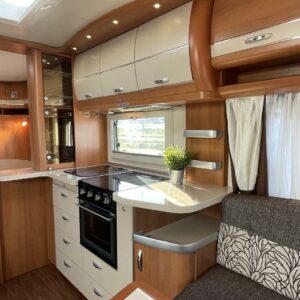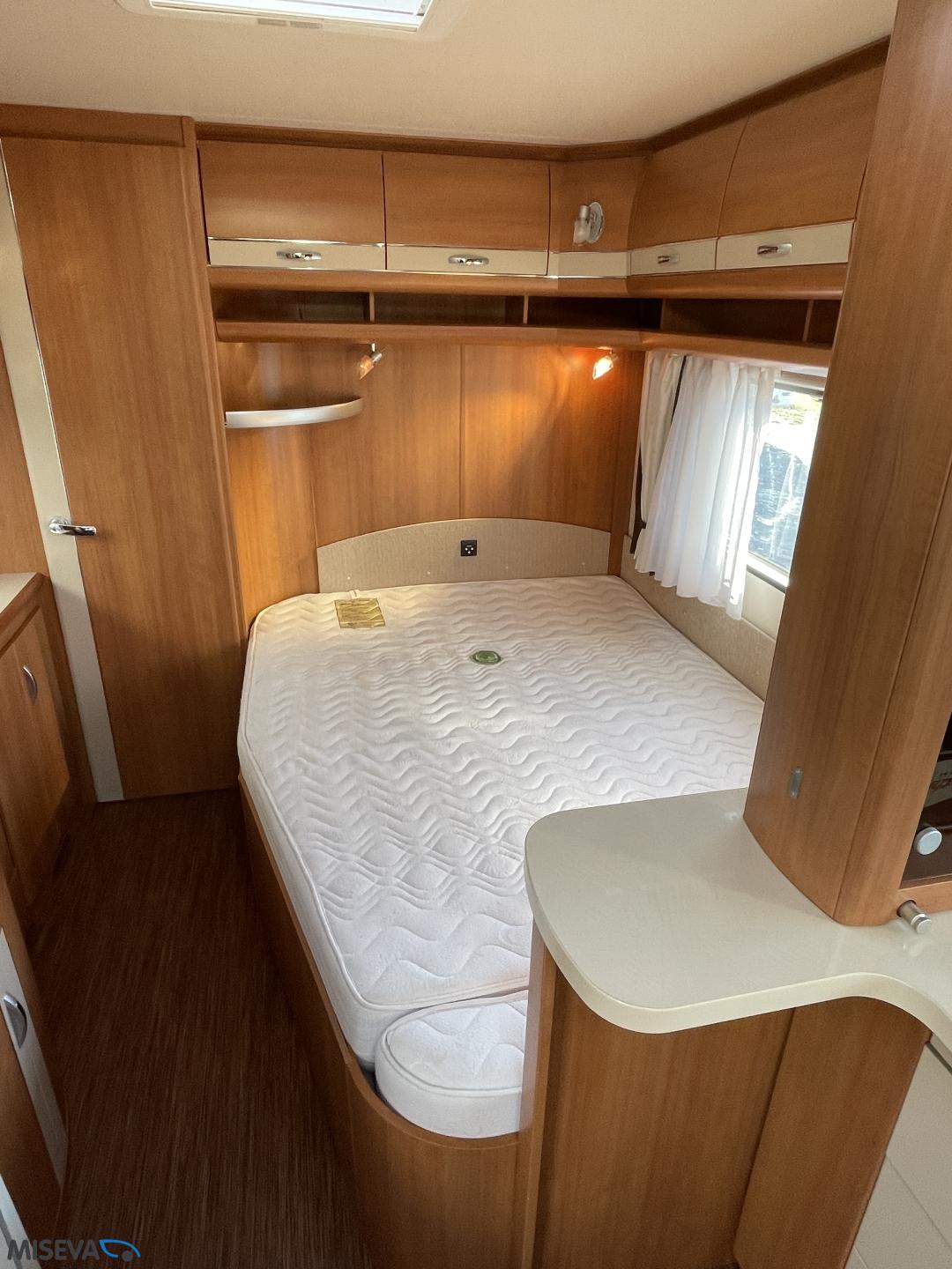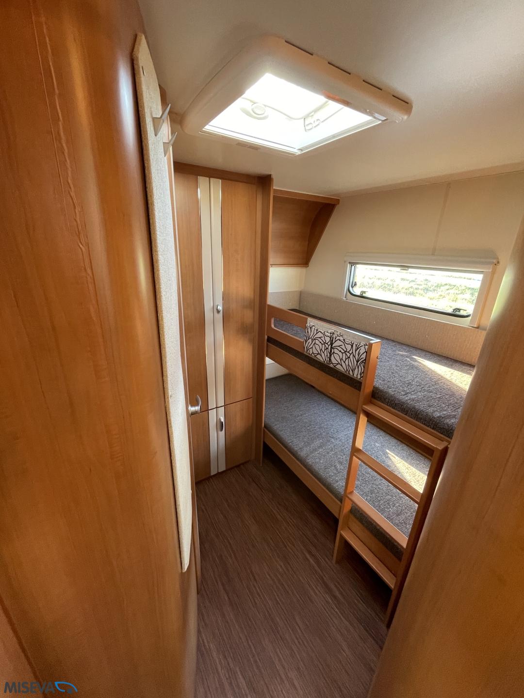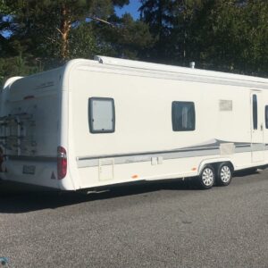 Alde, Jääkaappi, Kaasu-uuni, Kasetti WC, Kerrossänky, Liesi, Lämminvesiboileri, Nestekiertolämmitys, Pakastelokero, Parivuode, Suihku, Sähköpatruuna, TV-antenni tai lautasantenni, Lattialämmitys (sähkö), Markiisi, Polkupyöräteline, kwh-mittari, kaasun ulosotto