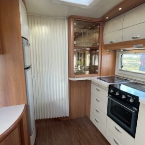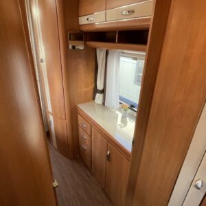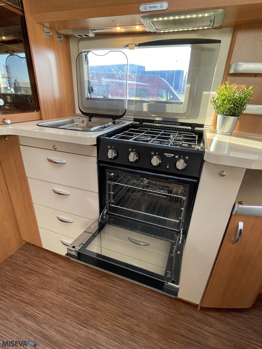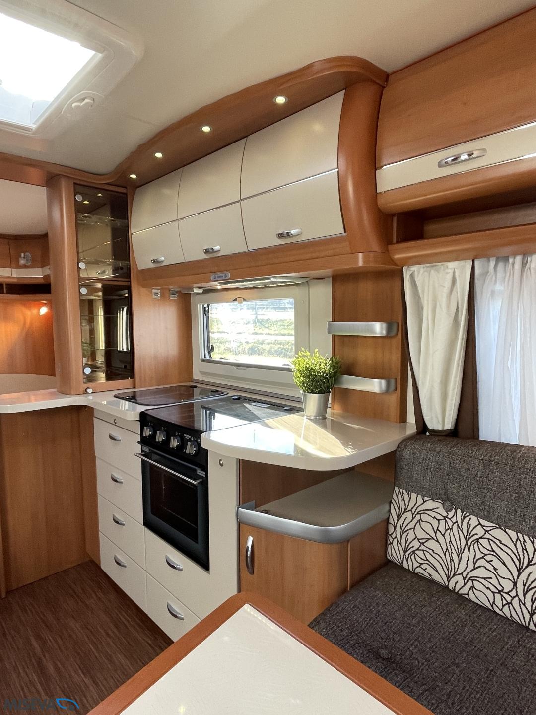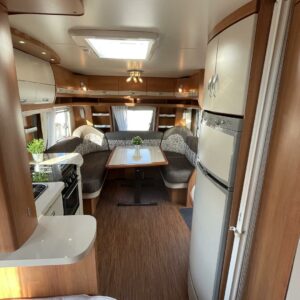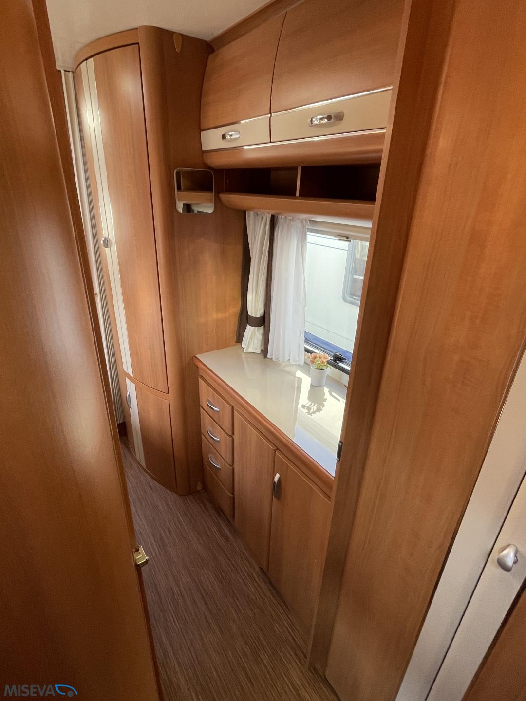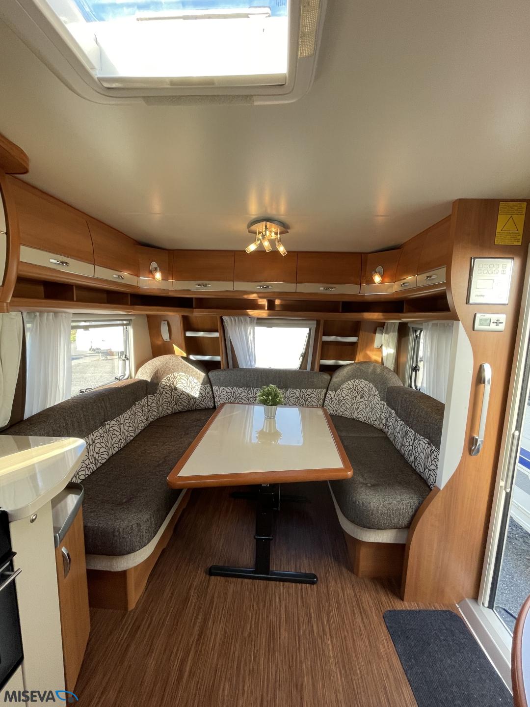 Alde, Jääkaappi, Kaasu-uuni, Kasetti WC, Kerrossänky, Liesi, Lämminvesiboileri, Nestekiertolämmitys, Pakastelokero, Parivuode, Suihku, Sähköpatruuna, TV-antenni tai lautasantenni, Lattialämmitys (sähkö), Markiisi, Polkupyöräteline, kwh-mittari, kaasun ulosotto
