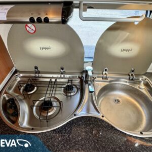 Alde, Jääkaappi, Kasetti WC, Kasettiverhot, Kattoluukku, Lattiamatot asunto-osassa, Liesi, Lämminvesiboileri, Nestekiertolämmitys, Pakastelokero, Parivuode, Sähköpatruuna, Tukijalat, Lattialämmitys (sähkö), Kesärenkaat, kwh-mittari, sähkön ulosotto, Asuinosan hyttysovi/verho