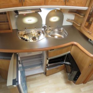Alde,Ilmastointi aut.,Jääkaappi,Kaasu-uuni,Kasetti WC,Kasettiverhot,Kattoluukku,Kerrossänky,Keskuslämmitys,Lattialämmitys,Lattiamatot asunto-osassa,Liesi,Lämminvesiboileri,Markiisi,Pakastelokero,Parivuode,Pesuallas,Suihku,Sähköpatruuna,Tukijalat,TV-antenni/lautasantenni