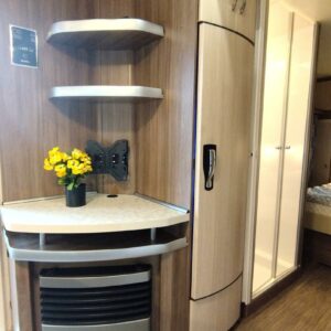 Aurinkopaneeli, CD-soitin, Jääkaappi, Kasetti WC, Kasettiverhot, Lämminvesiboileri, Markiisi, Pakastelokero, Parivuode, Radio, Suihku, Trumatic, Tukijalat, TV-antenni tai lautasantenni, Kattoluukku, Liesi, Pesuallas, jenkkijääkaappi