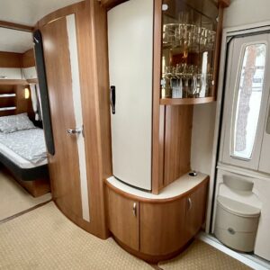 Alde, Jääkaappi, Kasetti WC, Kasettiverhot, Lämminvesiboileri, Liesi, Lattialämmitys, Kattoluukku, Nestekiertolämmitys, Pakastelokero, Pesuallas, Tukijalat, Sähköpatruuna, TV-antenni tai lautasantenni, Erillisvuoteet