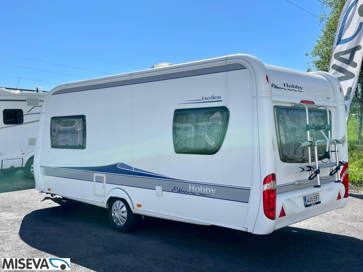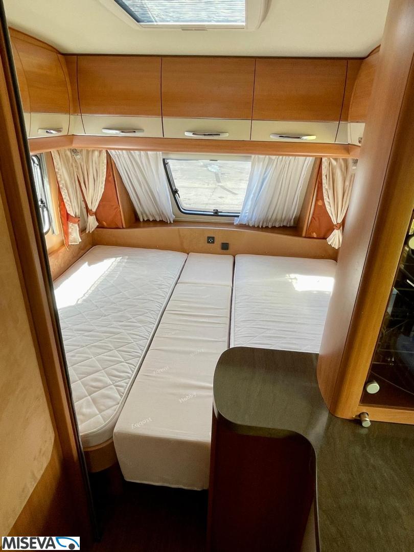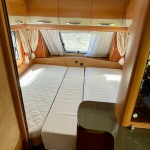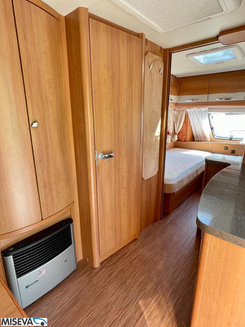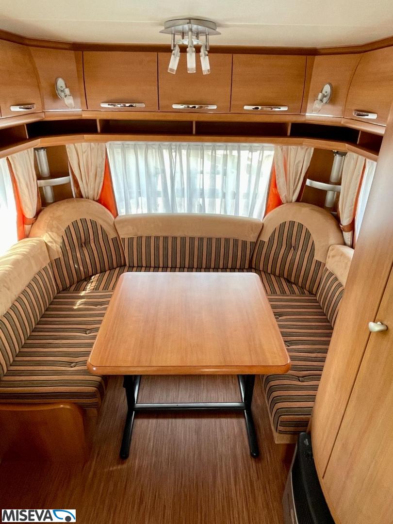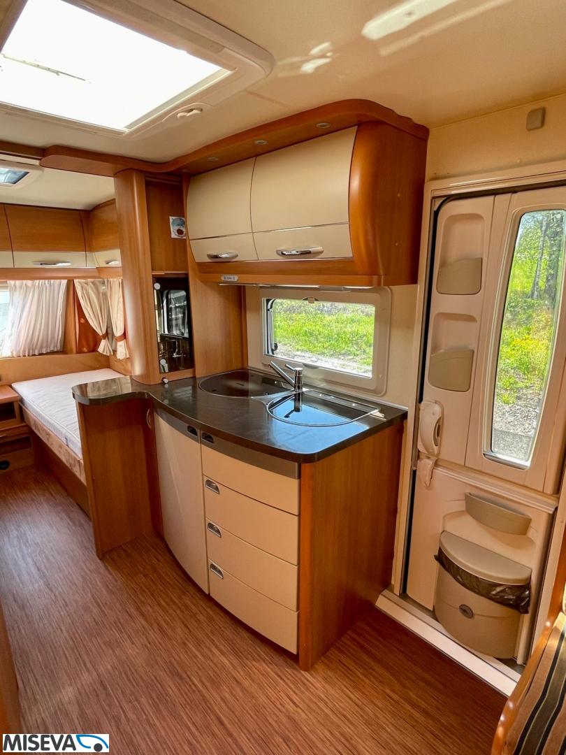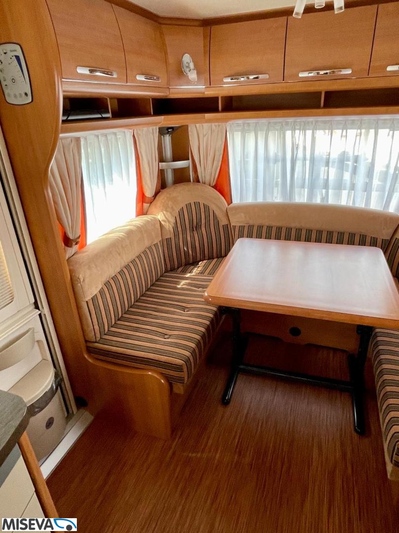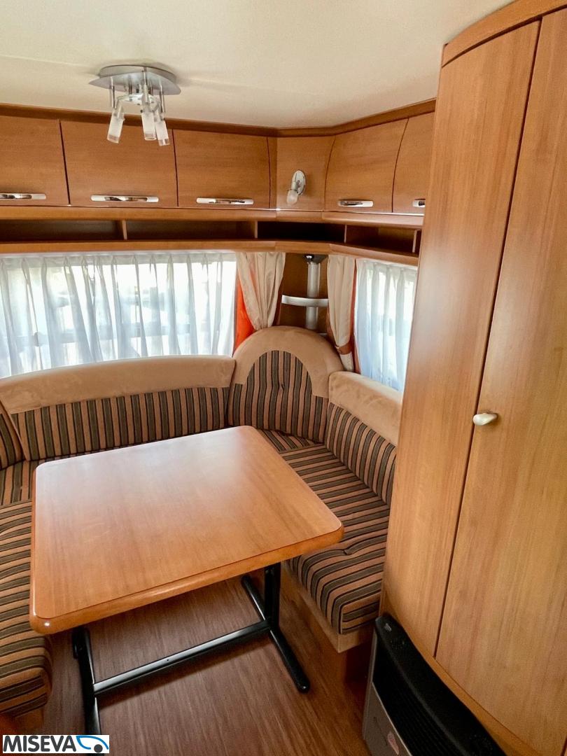 Varusteina mm: Truma- keskuslämmitys sähköpatruunalla, Kotelomarkiisi, Pyöräteline, TV- antenni,..
