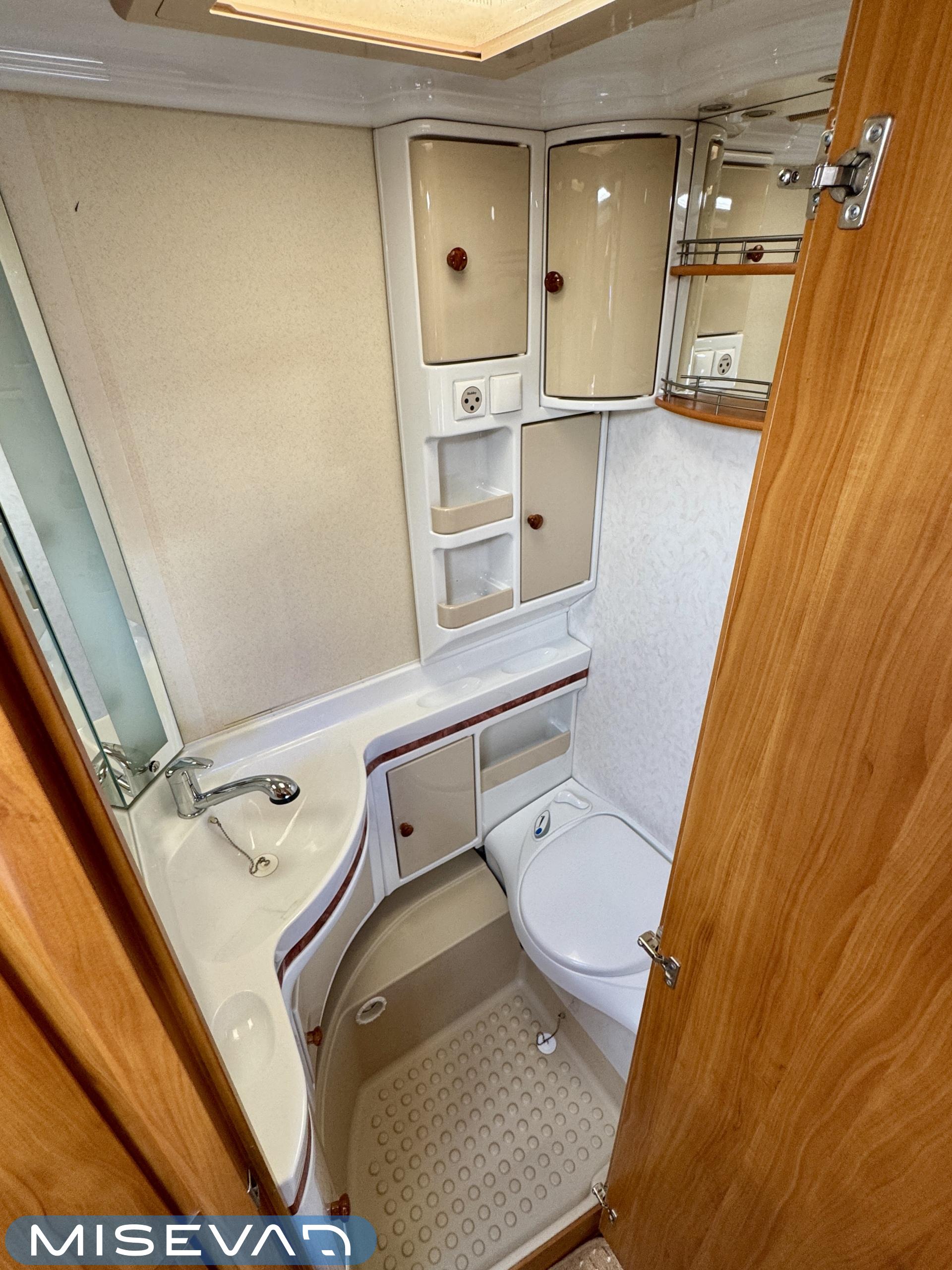 Erillisvuoteet, Ilmastointi: Automaattinen, Jääkaappi, Kasetti WC, Kasettiverhot, Kattoluukku, Liesi, Lattiamatot asunto-osassa, Lämminvesiboileri, Markiisi, Pakastelokero, Pesuallas, Pyöräteline, Suihku, Sähköpatruuna, TV-antenni tai lautasantenni, Trumatic, Tukijalat, Lattialämmitys (sähkö), Kesärenkaat, Lattialämmitys