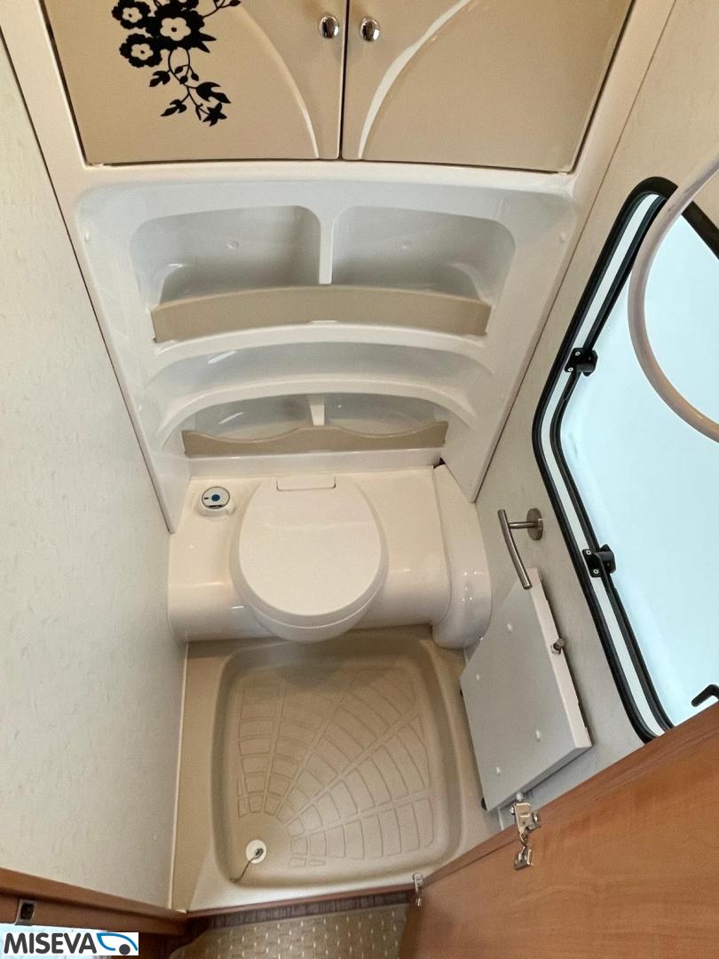 Alde, Jääkaappi, Kasetti WC, Kasettiverhot, Lattialämmitys, Lattiamatot asunto-osassa, Liesi, Lämminvesiboileri, Nestekiertolämmitys, Pakastelokero, Parivuode, Sähköpatruuna, Tukijalat, Kattoluukku, Suihku