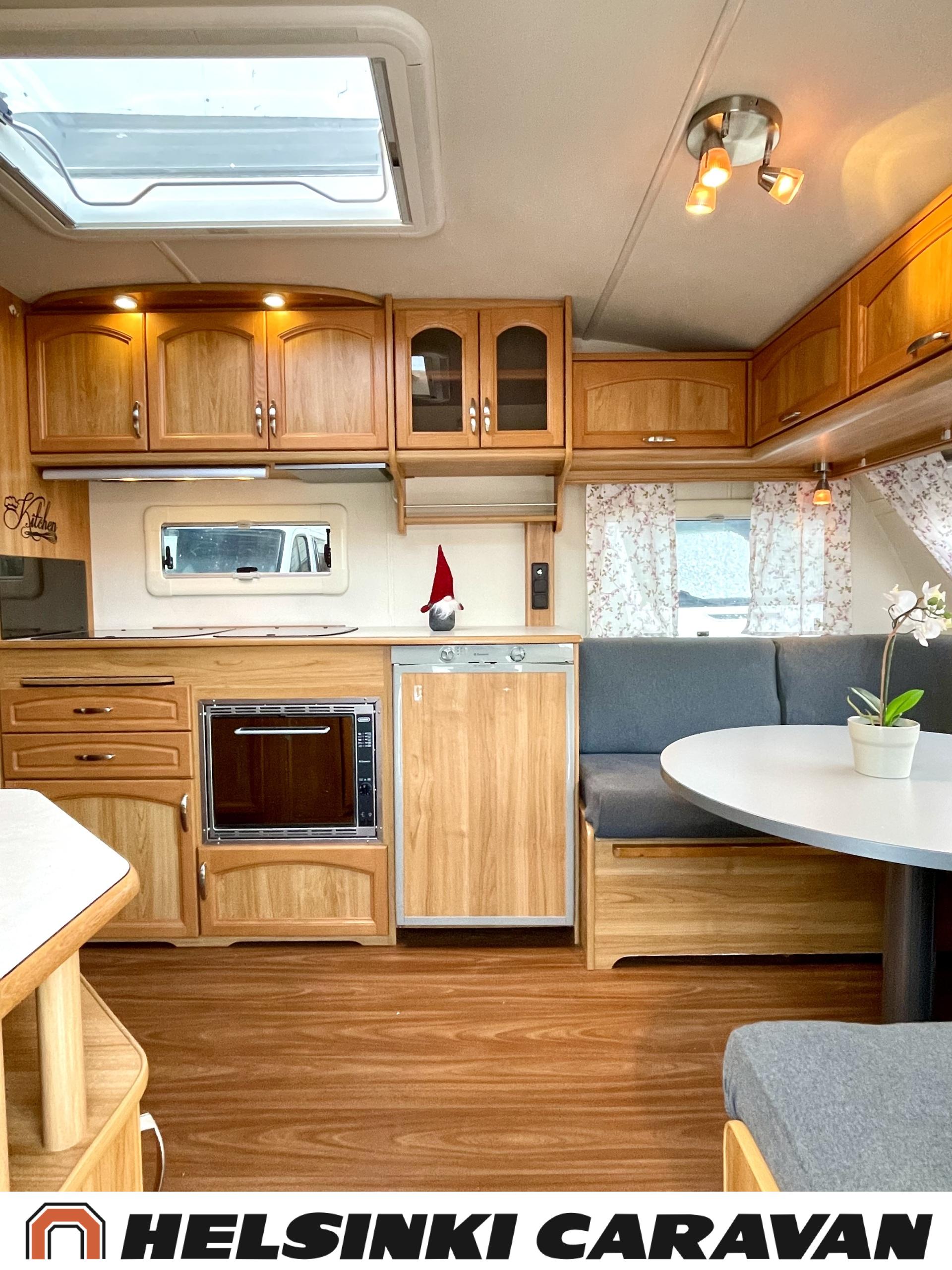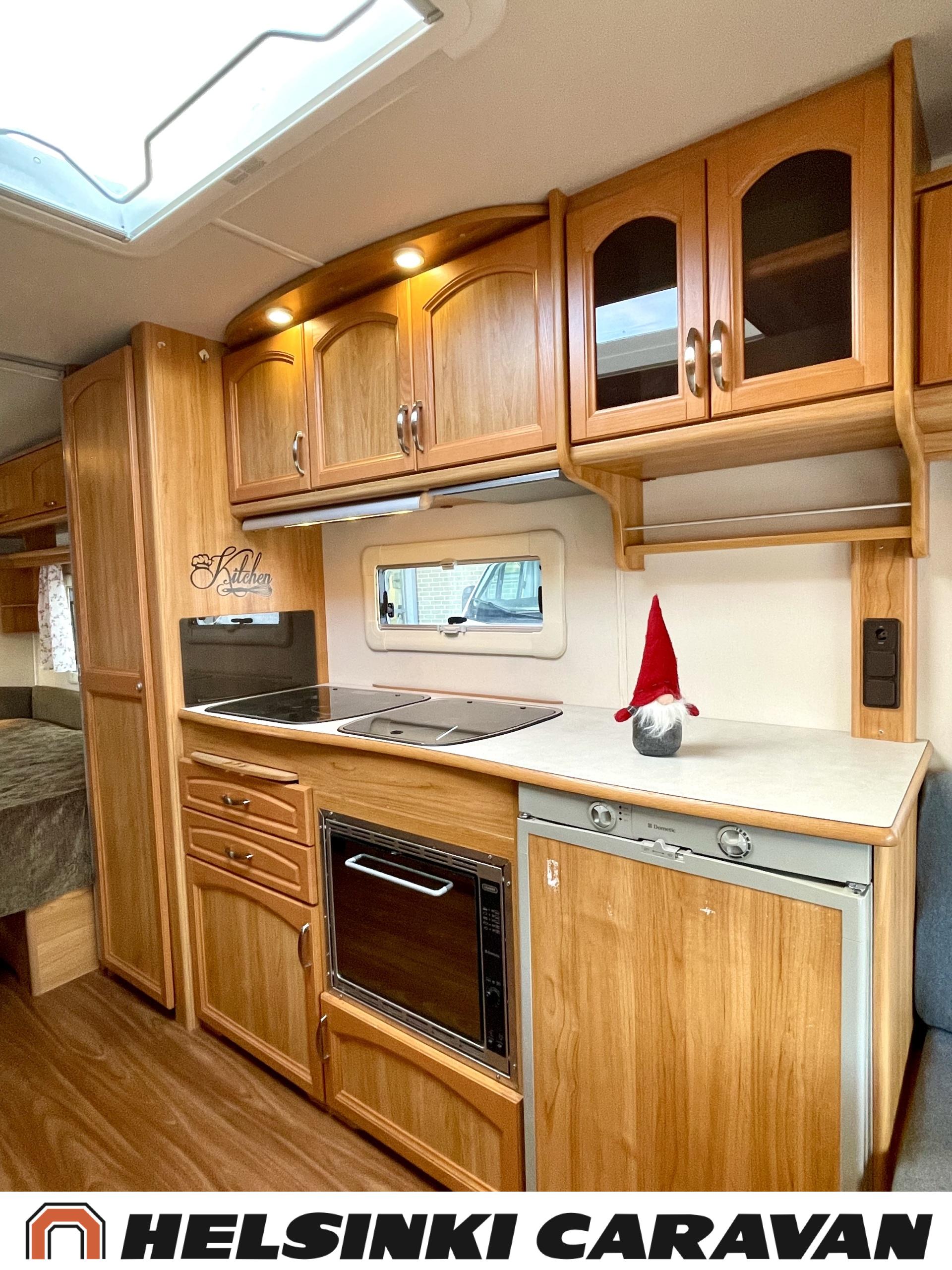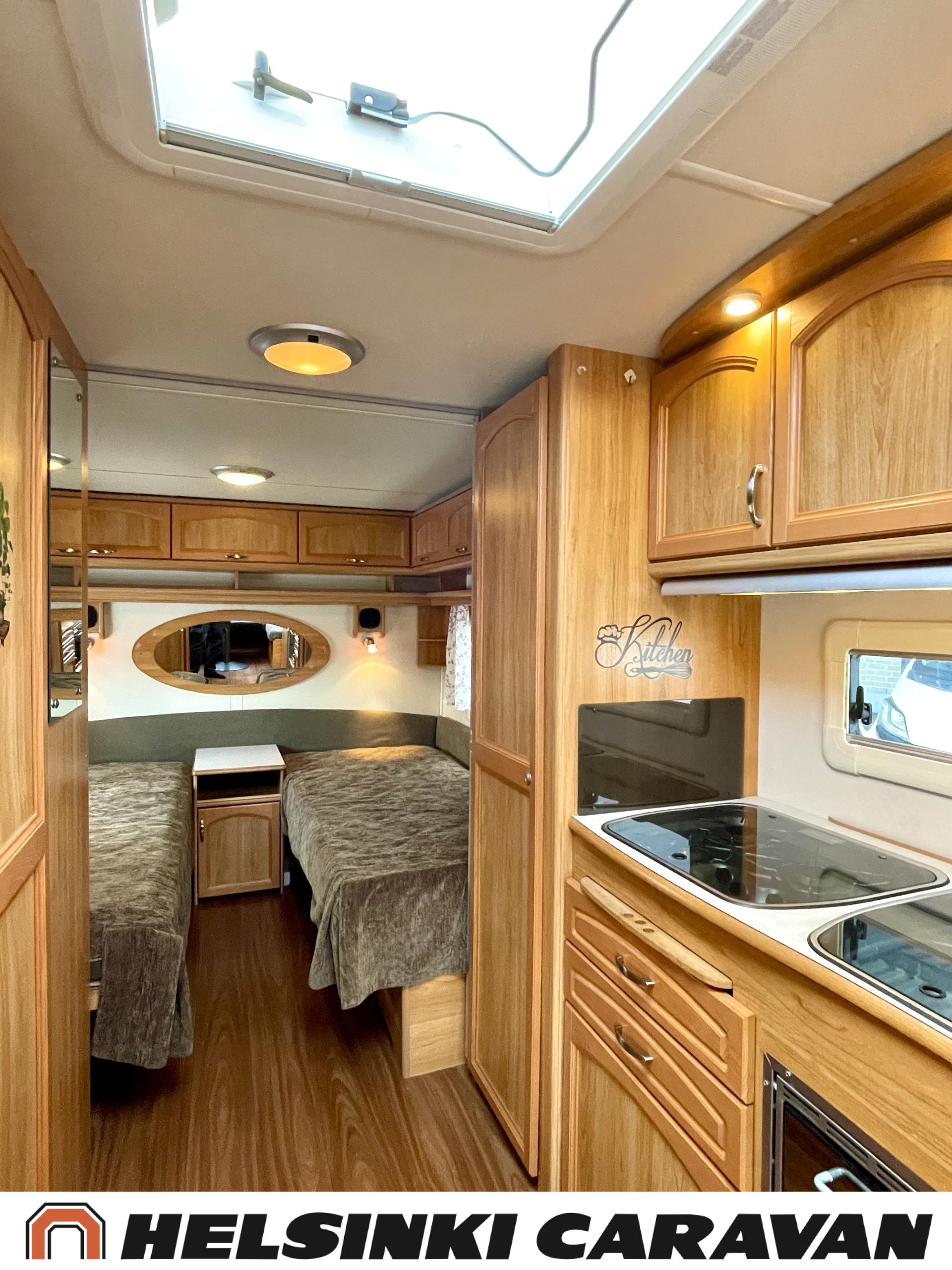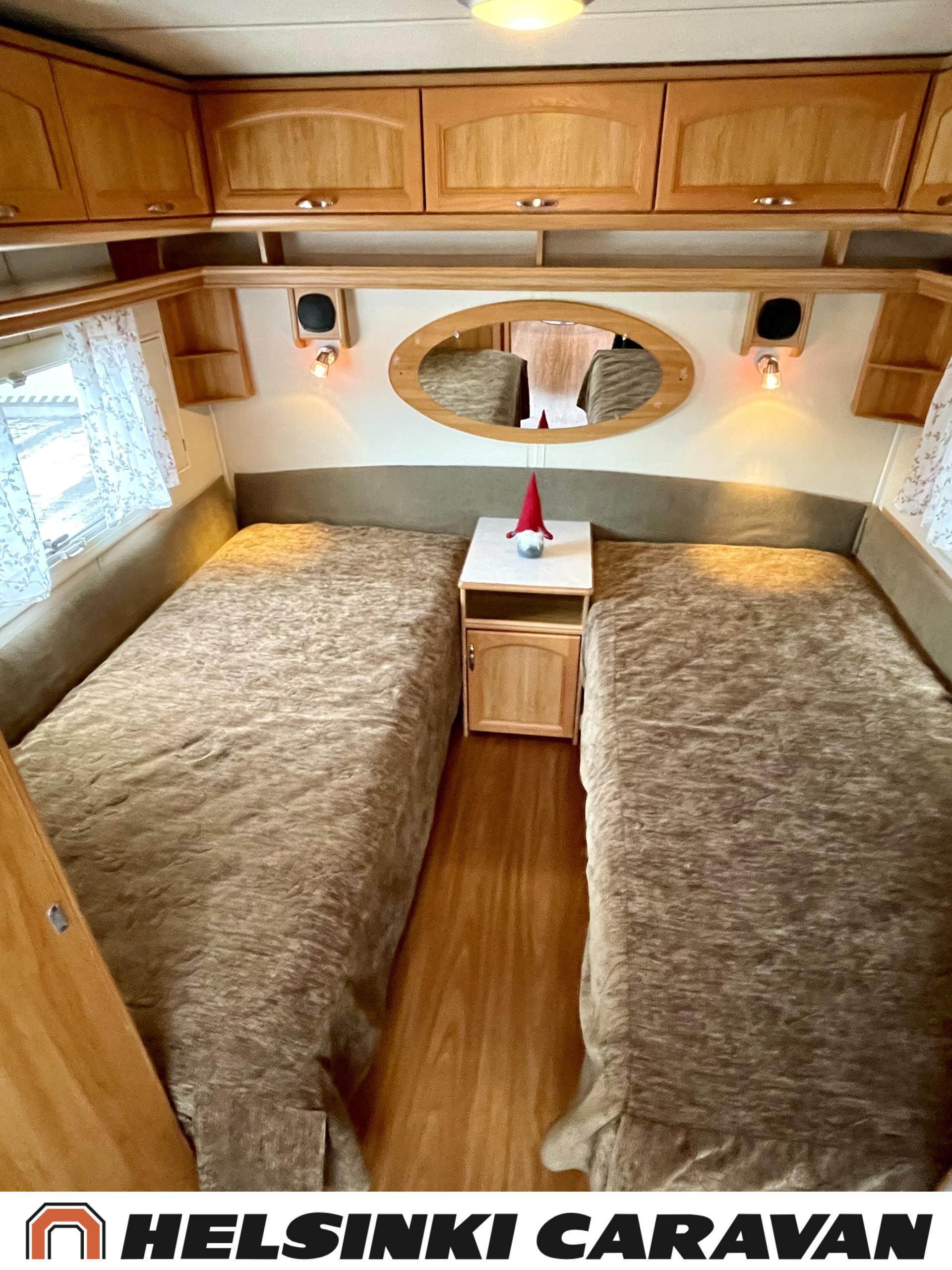 Alde,Erillisvuoteet,Jääkaappi,Kaasu-uuni,Kasetti WC,Kasettiverhot,Keskuslämmitys,Liesi,Lämminvesiboileri,Nahkasisusta,Nestekiertolämmitys,Sähköpatruuna,Tukijalat,TV-antenni/lautasantenni