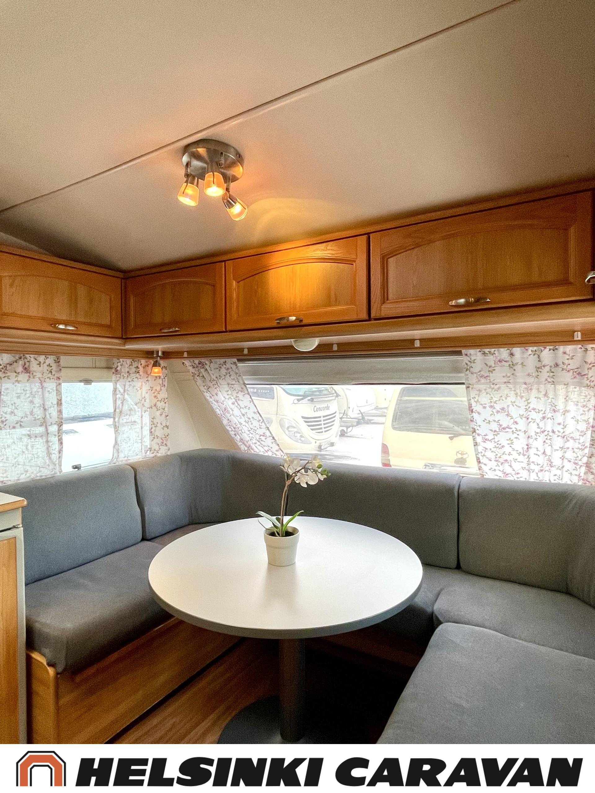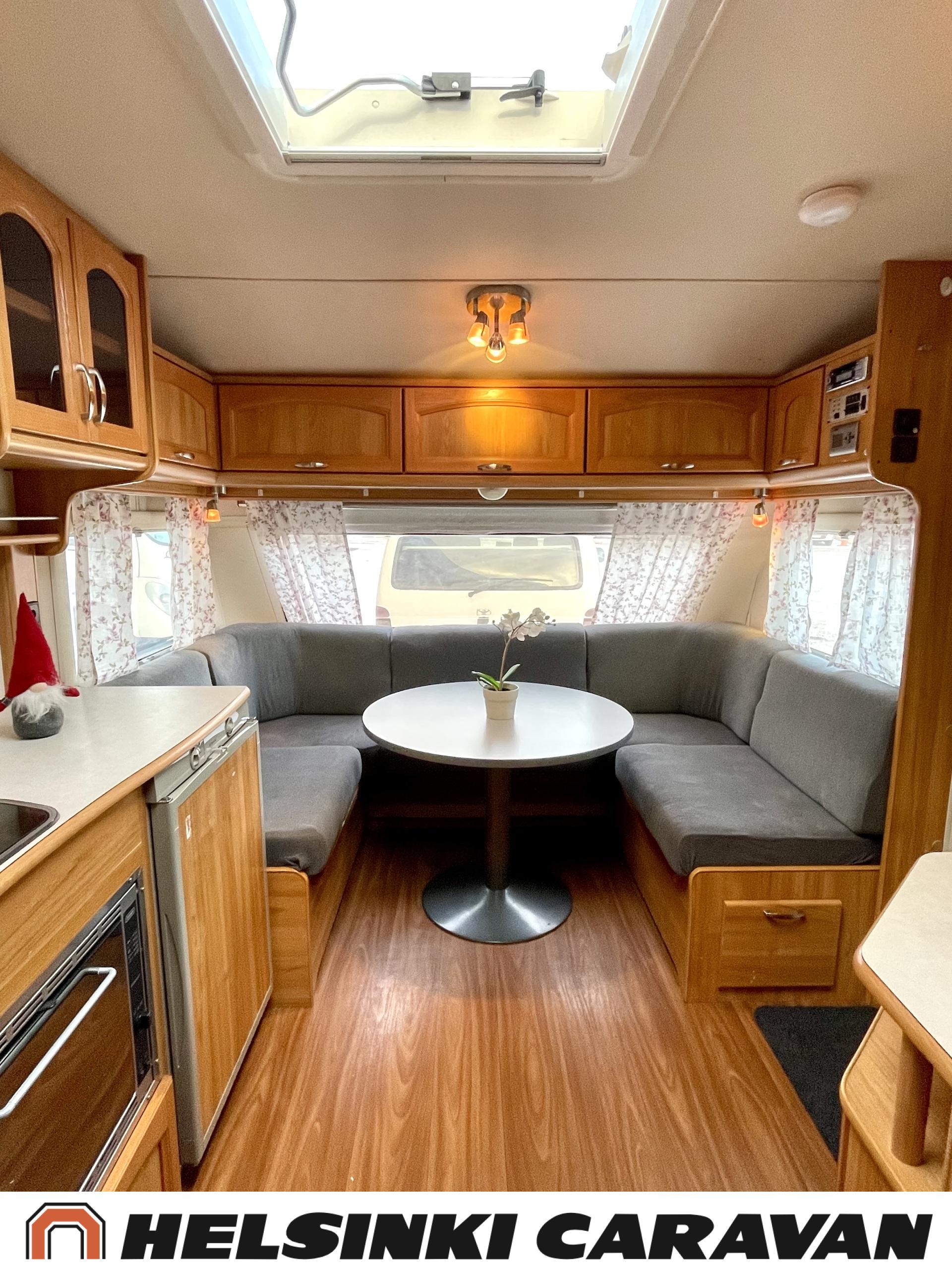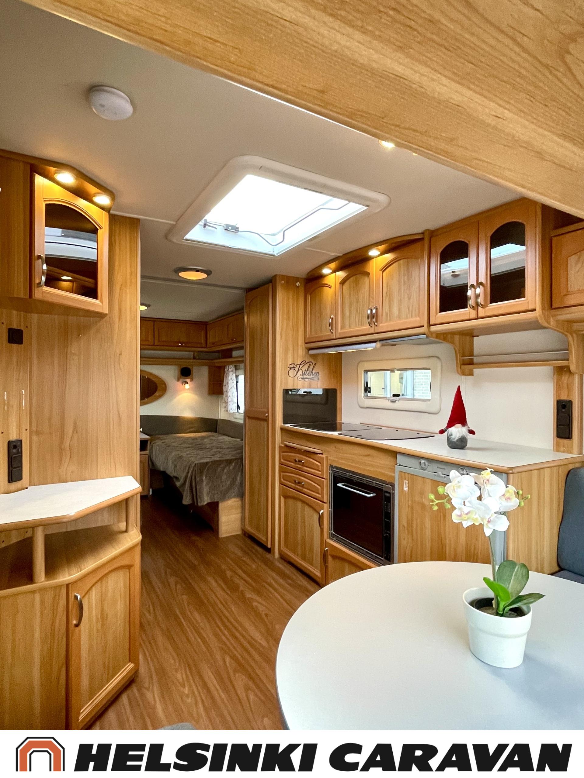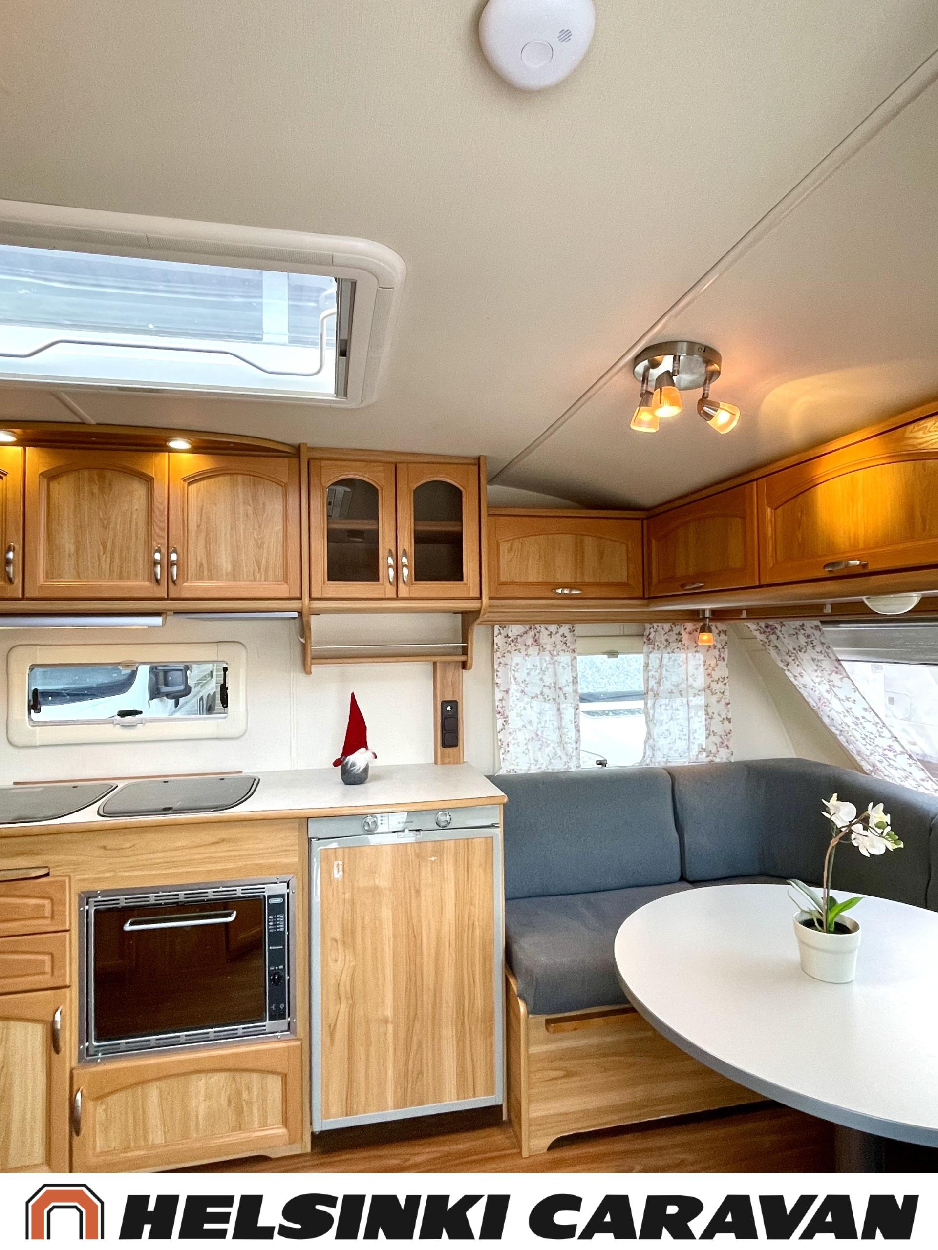 Alde,Erillisvuoteet,Jääkaappi,Kaasu-uuni,Kasetti WC,Kasettiverhot,Keskuslämmitys,Liesi,Lämminvesiboileri,Nahkasisusta,Nestekiertolämmitys,Sähköpatruuna,Tukijalat,TV-antenni/lautasantenni