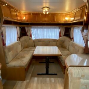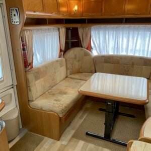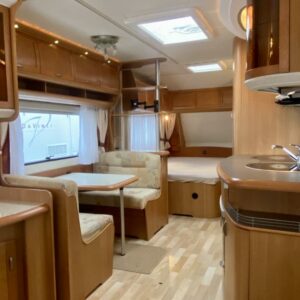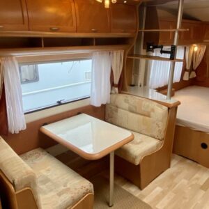 Vaunun etuosassa pitkittäinen parivuode ja pesuhuone/ WC. Vaunun keskivaiheilla on pieni pöytäryhmä ja keittiö kaasu- uunilla varustettuna. Isompi pöytäryhmä sijaitsee vaunun takaosassa.