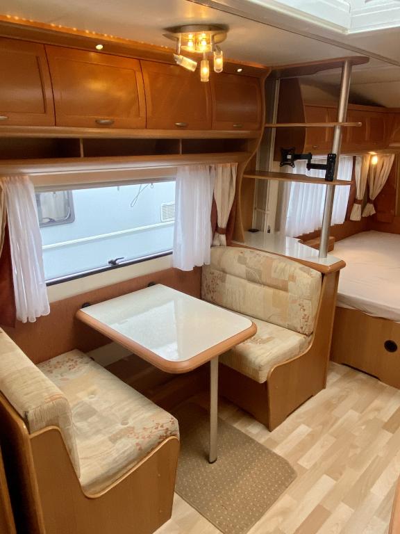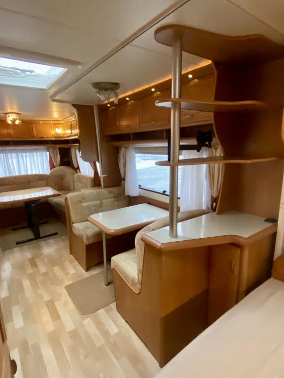 Varusteina mm: Alde- nestekeskuslämmitys sähköpatruunalla, Lattialämmitys, Ilmastointi, Kaasu- uuni, TV- antenni,..