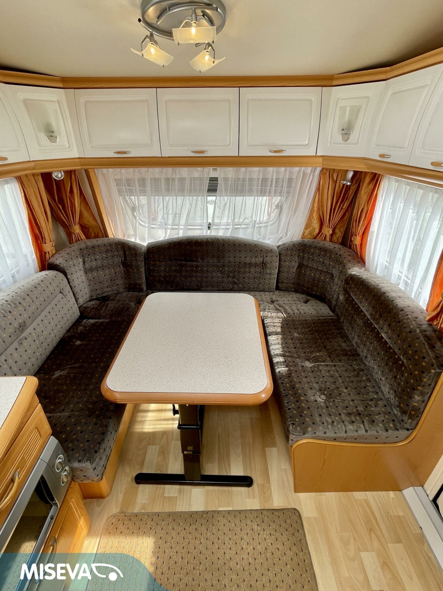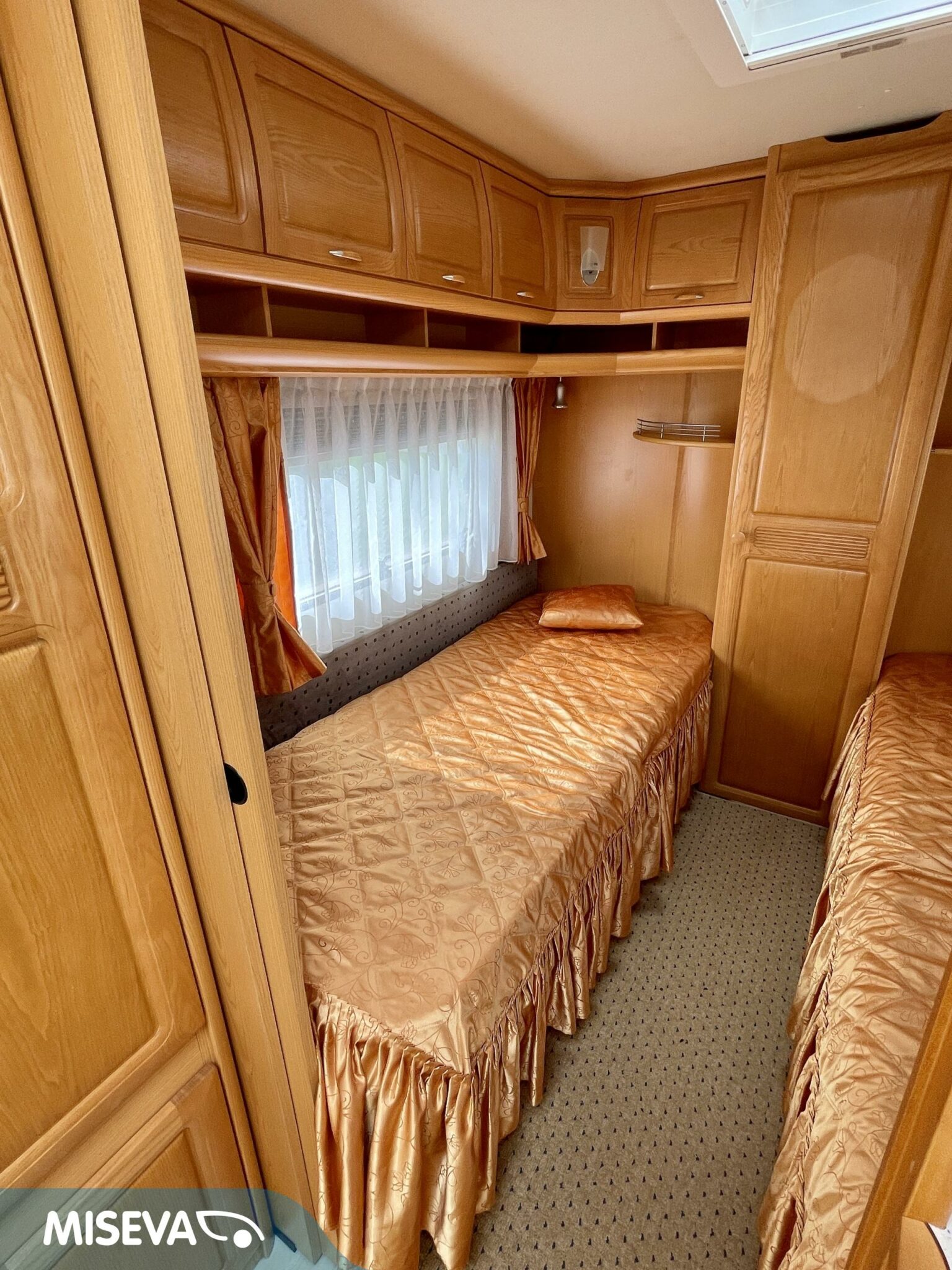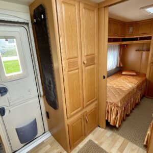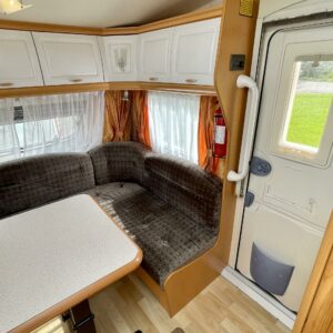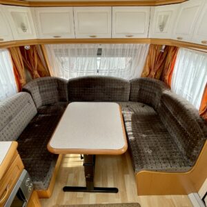 Vaunun etuosasta löytyy iso U- ryhmä, joka on tarpeen vaatiessa sijattavissa parivuoteeksi.