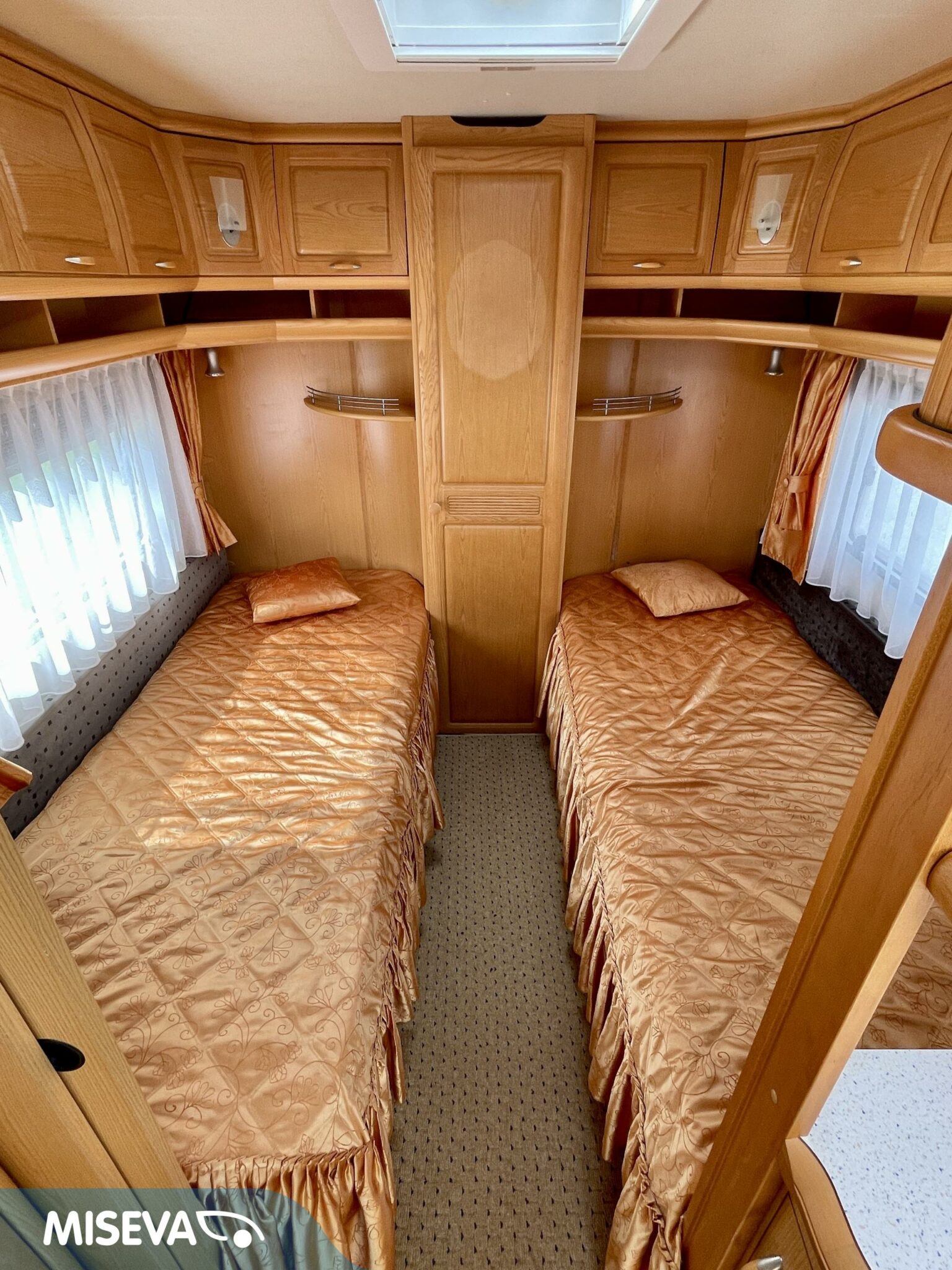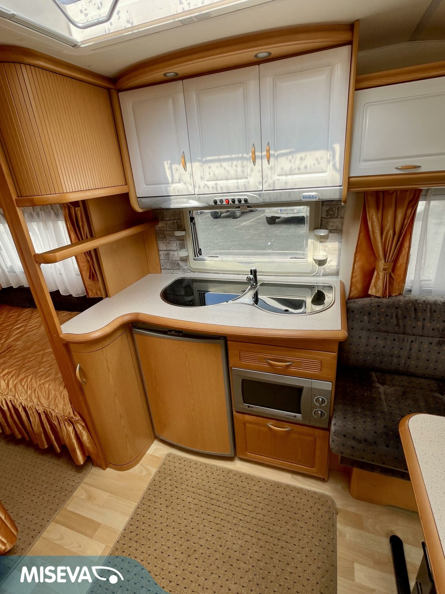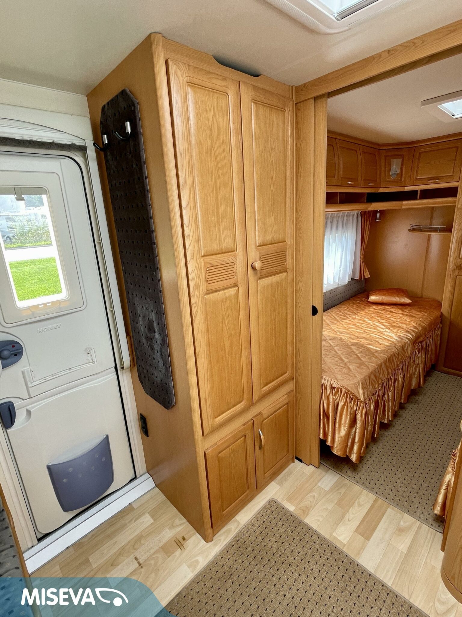 Vaunun etuosasta löytyy iso U- ryhmä, joka on tarpeen vaatiessa sijattavissa parivuoteeksi.