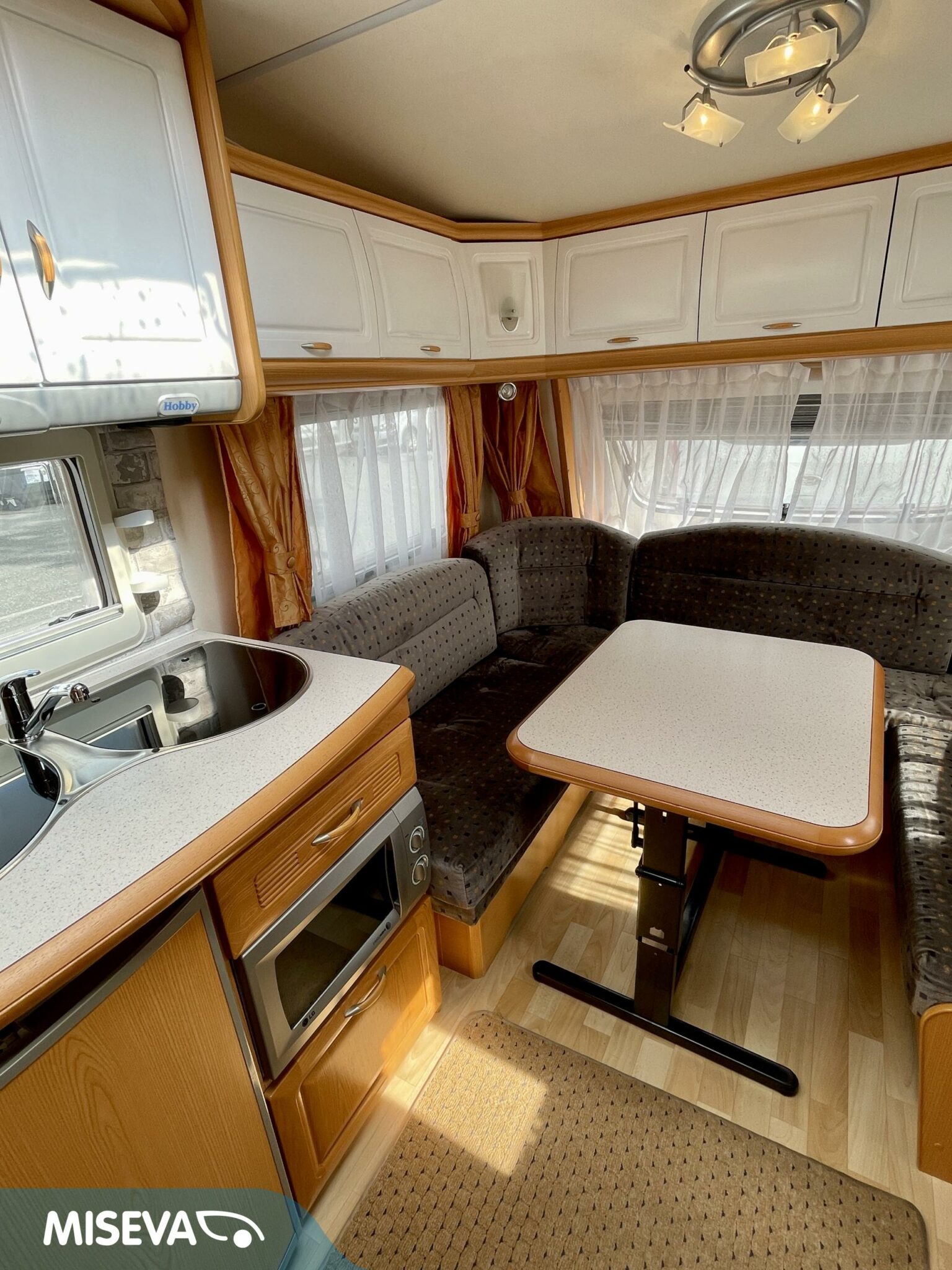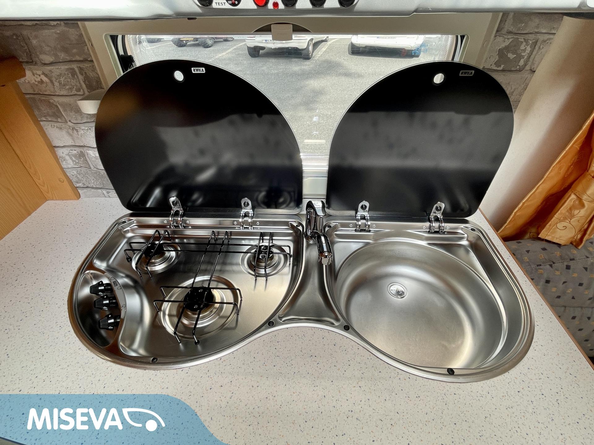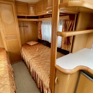Alde, Jääkaappi, Kasetti WC, Kasettiverhot, Kattoluukku, Lattialämmitys, Liesi, Lämminvesiboileri, Mikroaaltouuni, Nestekiertolämmitys, Pakastelokero, Pesuallas, Suihku, Sähköpatruuna, Tukijalat, Erillisvuoteet, Kattokaiteet/tikkaat, TV-antenni tai lautasantenni