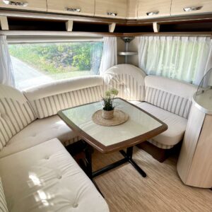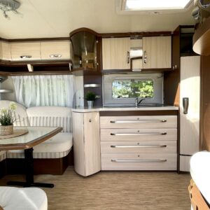 Alde, Jääkaappi, Kasetti WC, Kasettiverhot, Kattoluukku, Kerrossänky, Lattialämmitys, Lattiamatot asunto-osassa, Liesi, Lämminvesiboileri, Nestekiertolämmitys, Pakastelokero, Parivuode, Pesuallas, Suihku, Sähköpatruuna, TV-antenni tai lautasantenni, Tukijalat