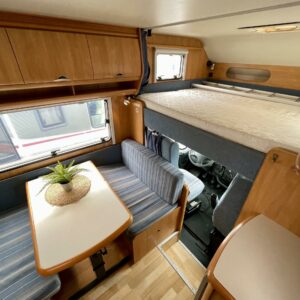 Pyöräteline, Markiisi, Truma, Jääkaappi, Kasetti WC, Kasettiverhot, Kattoluukku, Kerrossänky, Liesi, Lämminvesiboileri, Pakastelokero, Ohjaustehostin, Pesuallas, Radio, Suihku, Tuplapohja, Turbo