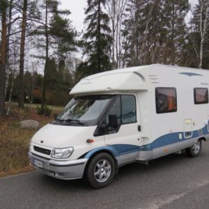 Varusteina mm; 2 x renkaat, Truma-ilmakeskuslämmitys,markiisi ym….