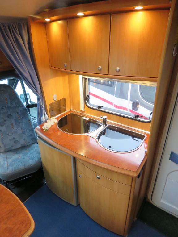 ABS-jarrut,Airbag,Erikoisvanteet,Ilmastointi ajotilassa,Ilmastointi man.,Jääkaappi,Kahdet renkaat,Kasetti WC,Kasettiverhot,Kattoluukku,Keskuslämmitys,Käynnistyksenesto,Lattiamatot asunto-osassa,Liesi,Lämminvesiboileri,Markiisi,Mikroaaltouuni,Ohjaustehostin,Pakastelokero,Parivuode,Pesuallas,Pyöräteline,Stereot,Sähkörappu,Trumatic,Turbo