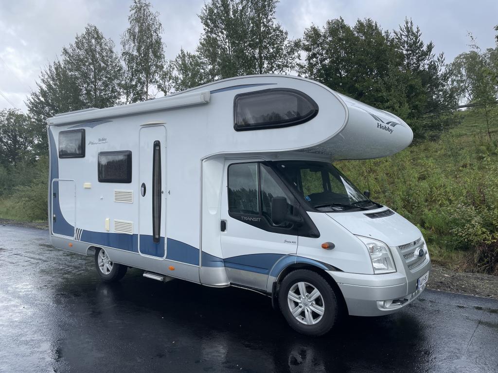 Vain 44 tkm ajettu Hobby pirteällä Transitin 140 hv- moottorilla.