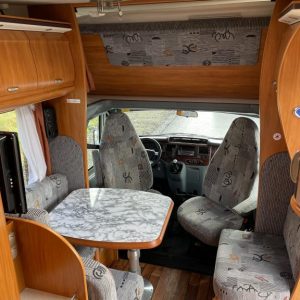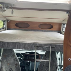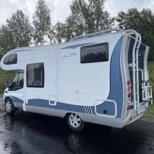 Auton takaosassa parivuode ja tilava takatalli molemminpuolisin luukuin. Edestä löytyy leveän alkovivuoteen lisäksi viihtyisä L- pöytäryhmä sivusohvalla.