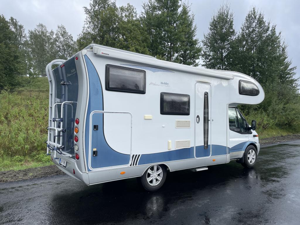 Vain 44 tkm ajettu Hobby pirteällä Transitin 140 hv- moottorilla.