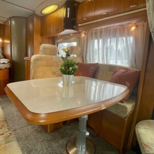 Airbag, Parivuode, Suihku, Jääkaappi, Kasetti WC, Kattoluukku, Liesi, Lohkolämmitin, Vetokoukku, Vakionopeudensäädin, Radio, Sähkökäyttöiset ikkunat, Sähkörappu, Pesuallas, Trumatic, Sähköpatruuna, Sähköpeilit, Ohjaustehostin, Pakastelokero, Markiisi