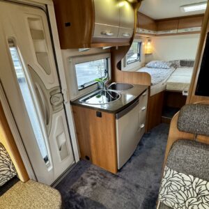 Keittiösaareke ja pesuhuone/ WC sijaitsevat auton keskivaiheilla.