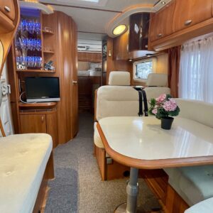 Hienokuntoinen, tyylikkyyttä uhkuva Toskana- sarjan Hobby! Yli 8 m kokonaispituus tarjoaa riittävät tilat vaativammallekin käyttäjälle. 3- litrainen moottori takaa että meno maistuu myös mäkisemmässä maastossa.