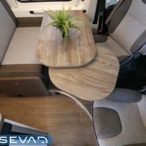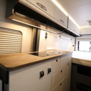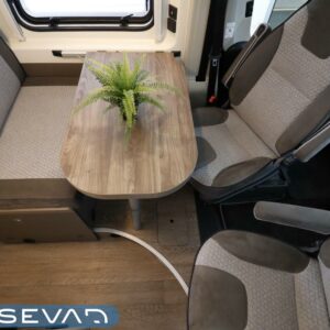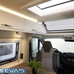 Todella tyylikäs automaattivaihteinen retkeilyauto. Etuosassa avara istuinryhmä, jonka yläpuolella oleva panoraamaikkuna tuo valoa ja tilan tuntua. Keskiosassa keittiö sekä kylpyhuone suihkuvarustuksella ja perässä leveä parivuode poikittain. Vuoteen alla on monikäyttöinen laajennettavissa oleva tavaratila. Kokonaisuuden kruunaavat markiisi sekä multimedialaite, josta löytyy niin peruutuskameraa kuin Apple Carplayta ja Android Autoa.