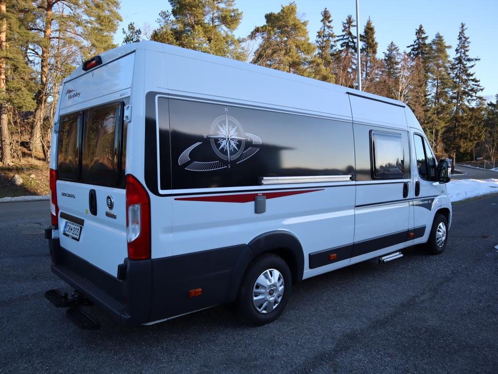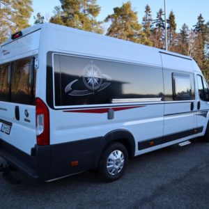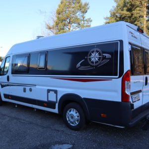 Varusteissa mm. Ilmastointi ajotilassa, Tehokas Truma- ilmakeskuslämmitys sähköpatruunalla, Vetokoukku (max. 2 500kg), 2 x renkaat, ym…