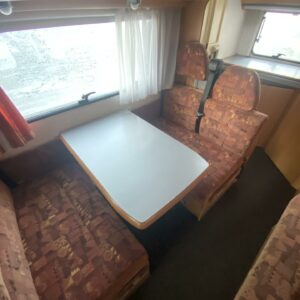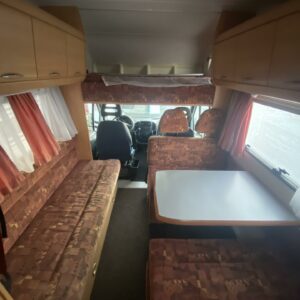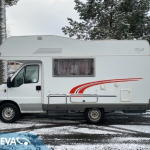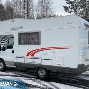 Hiljattain katsastettu matkakumppani odottaa uutta käskyttäjää. Ajomäärähän on hyvinkin maltillisella tasolla (88tkm) ja pinnat on ikäisekseen niin sisällä kun ulkonakin ihan OK oloisessa kunnossa. Auton takaosassa on keittiö, sekä WC/kylpyhuonetilat. Oleskelutilassa on vastakkain istuttava pöytäryhmä, sekä leveä sivusohva. Ohjaamon päällä on alkovivuode kahdelle henkilölle. Makuutiloja auto tarjoaa viidelle, kun pöytäryhmä saadaan muutettua parivuoteeksi. Trumatic ilmakeskuslämmitys mikä on todettu toimivaksi kaasulla.