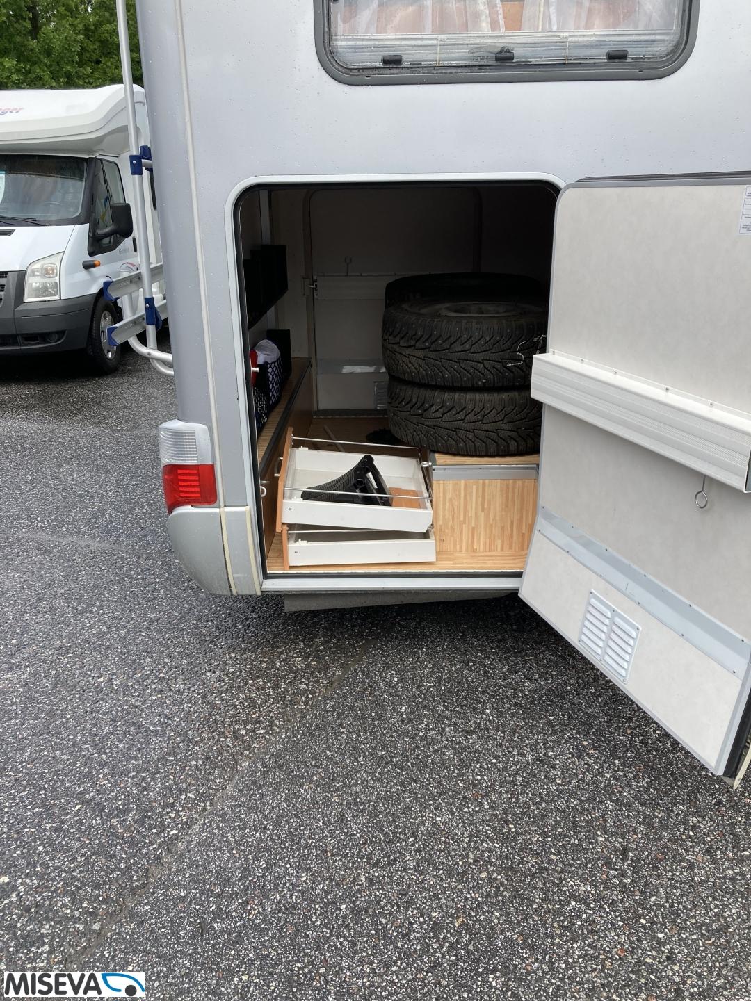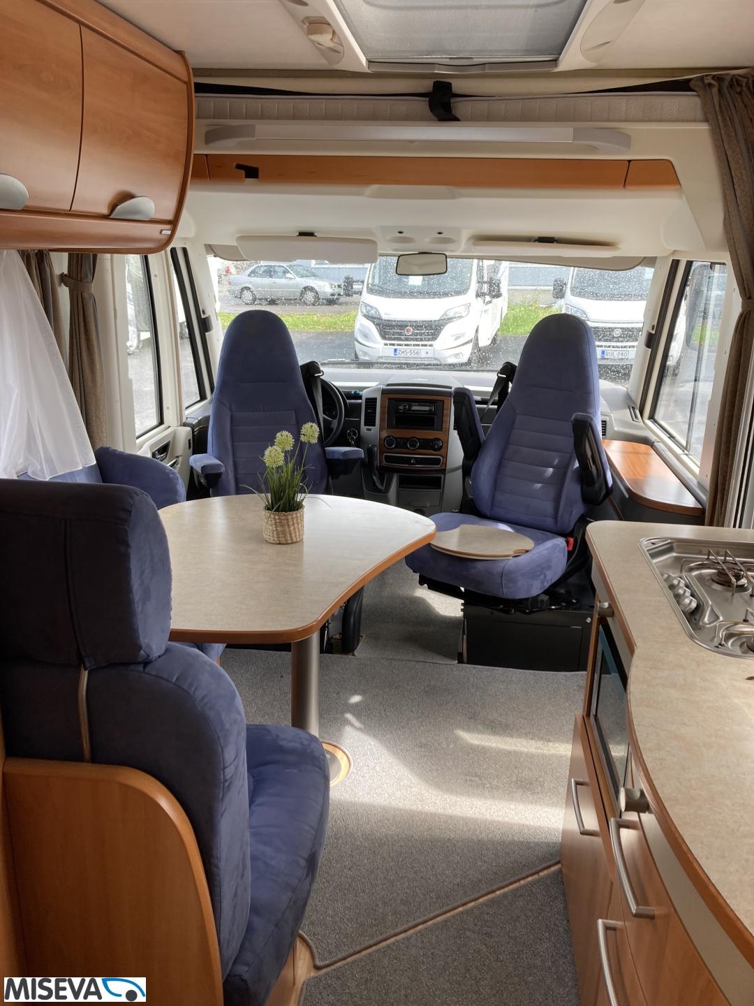 CD-soitin, Erikoisvanteet, Truma, Lattialämmitys (sähkö), Ilmastointi (ohjaamo), Ilmastointi (asuintila), Vakionopeuden säädin, Markiisi, Polkupyöräteline, 1 x kevytmet.vanteet, Eristetty harmaavesisäiliö, laskuvuode, ohjaamon kasettiverhot, jenkkijääkaappi, Asuinosan hyttysovi/verho, Kaasu-uuni, Kasetti WC, Kasettiverhot, Lattiamatot asunto-osassa, Liesi, Lämminvesiboileri, Mikroaaltouuni, Parivuode, Polttoainekäyttöinen lisälämmitin, Sähkökäyttöiset ikkunat, Sähköpatruuna, Sähköpeilit, Sähkörappu, Talvirenkaat(nasta), televisio, televisioteline