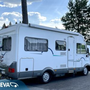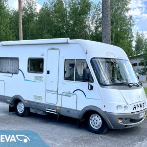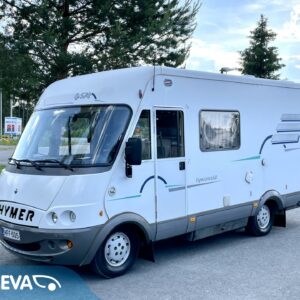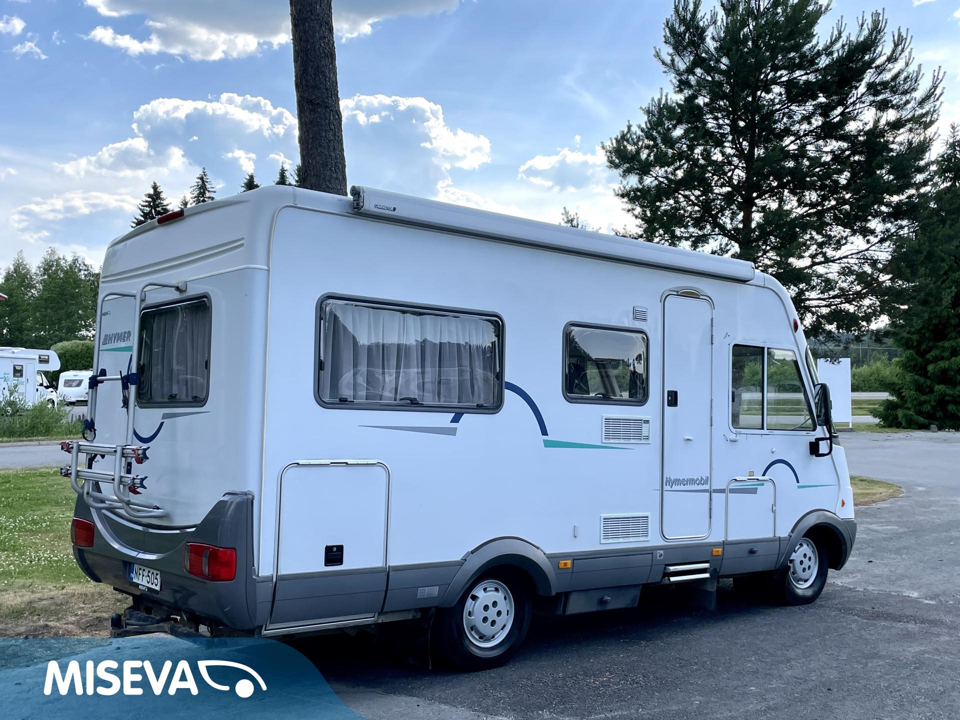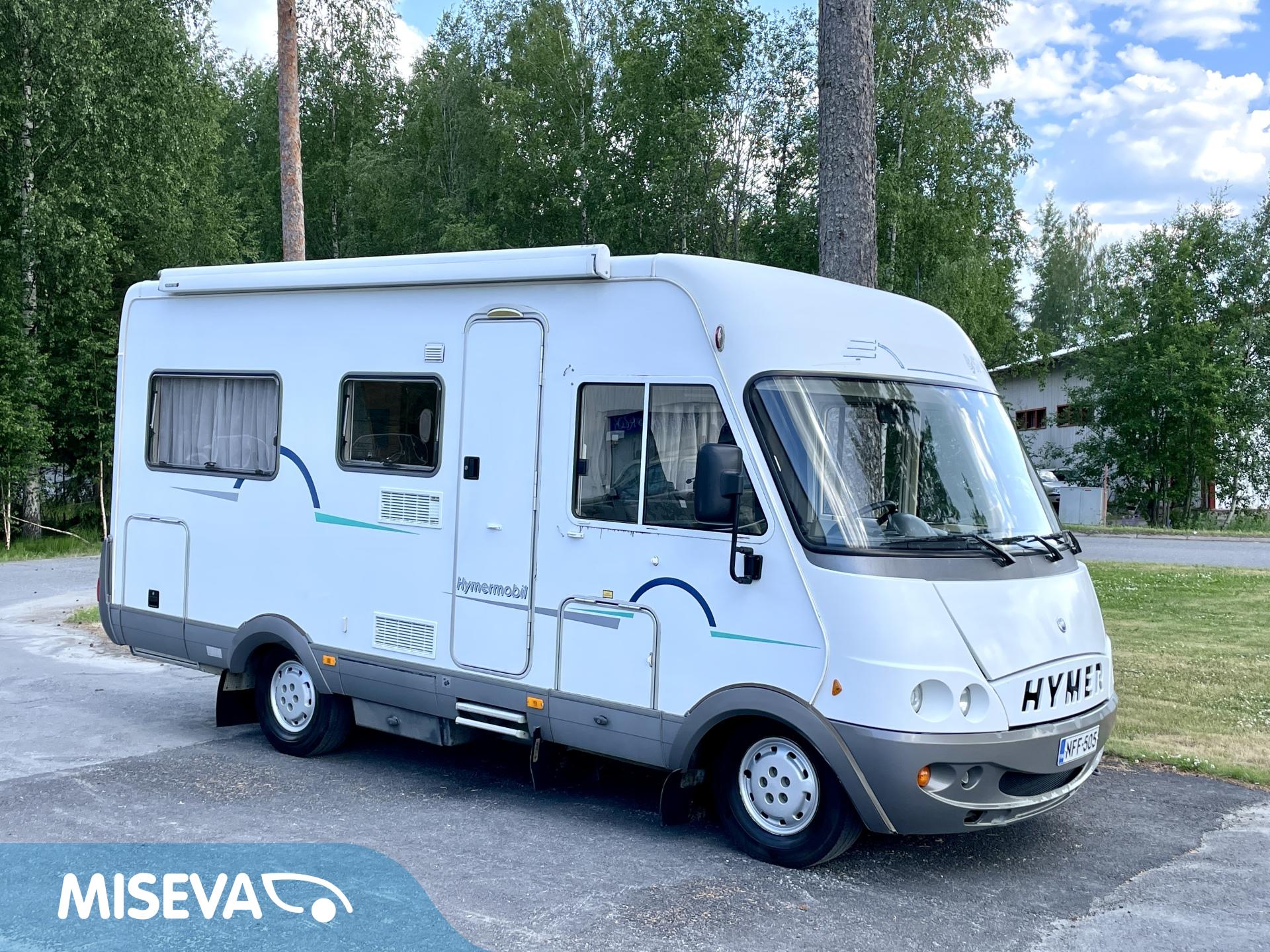 Sympaattinen nappisilmä- Hymer joka tarjoaa hiukan reiluun kuuteen metriin mukavat tilat neljän hengen matkantekoon ja leiritymiseen.