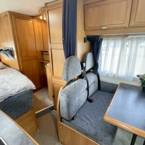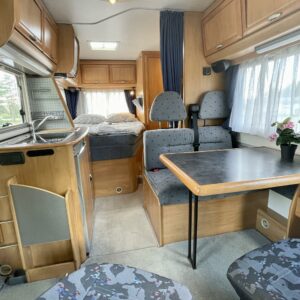 Jääkaappi, Kasetti WC, Kasettiverhot, Kattoluukku, Keskuslämmitys, Käynnistyksenesto, Lattialämmitys, Lattiamatot asunto-osassa, Liesi, Lämminvesiboileri, Markiisi, Ohjaustehostin, Pakastelokero, Parivuode, Pesuallas, Pyöräteline, Stereot, Suihku, Sähkökäyttöiset ikkunat, Trumatic, Turbo, Vetokoukku, TV-antenni tai lautasantenni, Radio, Polttoainekäyttöinen lisälämmitin