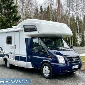 Auton etuosassa on leveä alkovivuode. Keskempää löytyy keittiösaareke ja pöytäryhmä neljälle. Pöytäryhmästä saa tarvittaessa kolmannen parivuoteen.