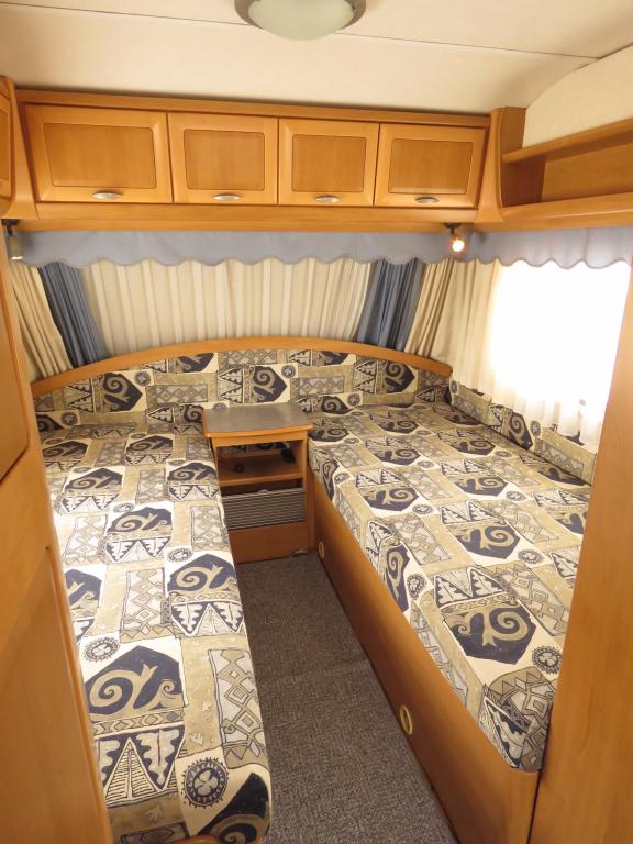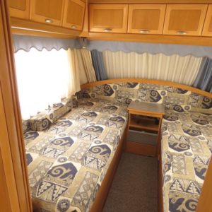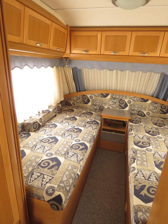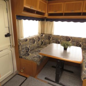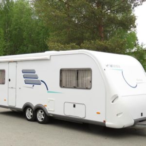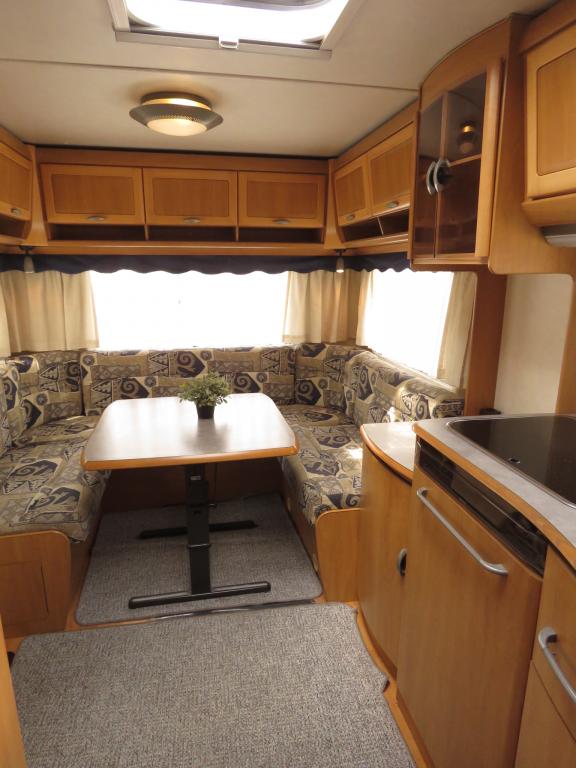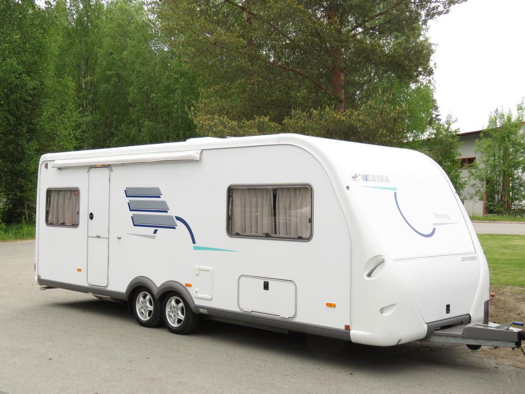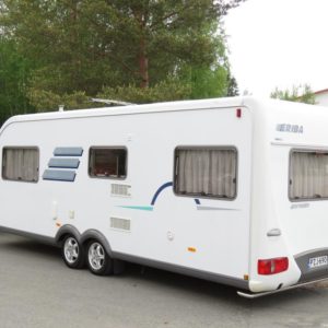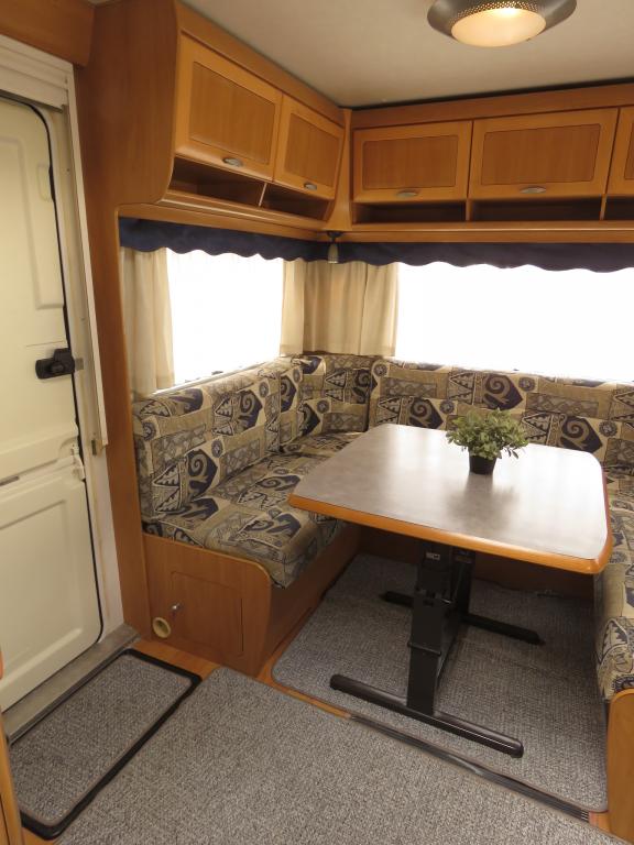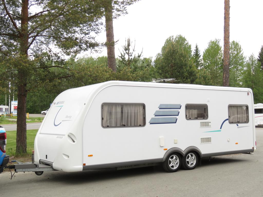 Varusteina mm: Truma- keskuslämmitys, Lattialämmitys, Pussimarkiisi, TV- antenni,..