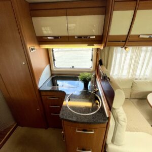7 m kokonaispituus mahdollistaa avarat sisätilat. Auton etuosassa on viihtyisä vaalealla kankaalla verhoiltu L- istuinryhmä. Kääntyvien etuistuinten ja sivusohvan ansiosta pöydän ympärille mahtuu mukavasti isompikin seurue maailman menoa taivastelemaan.
