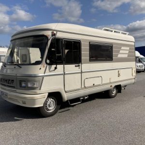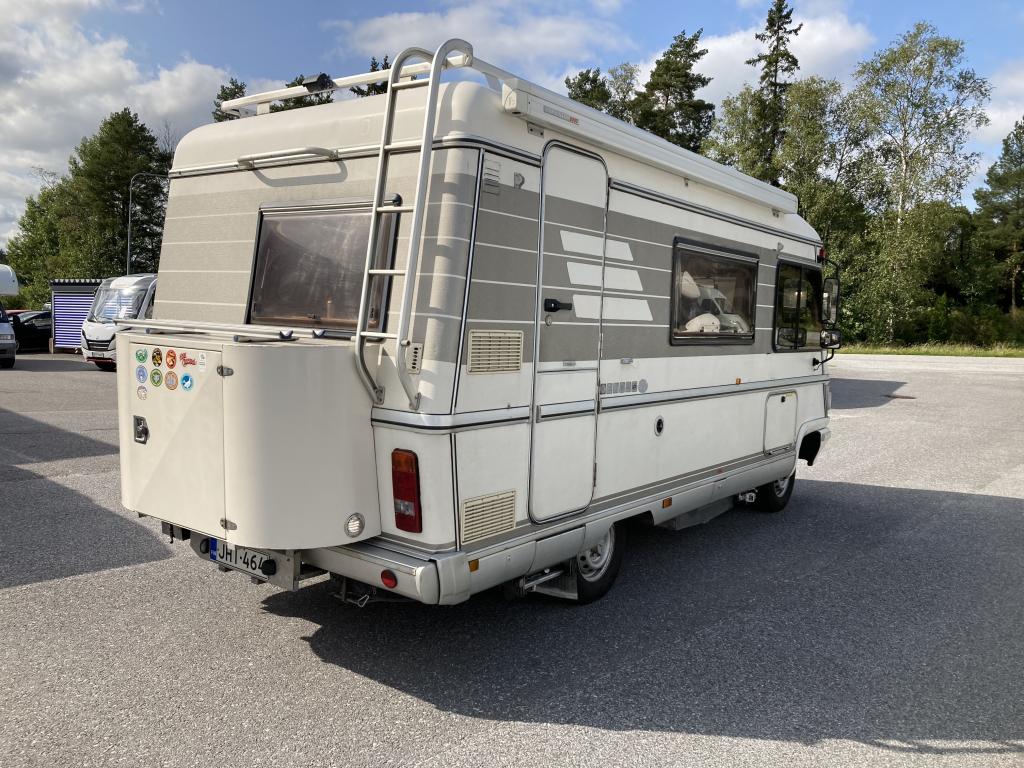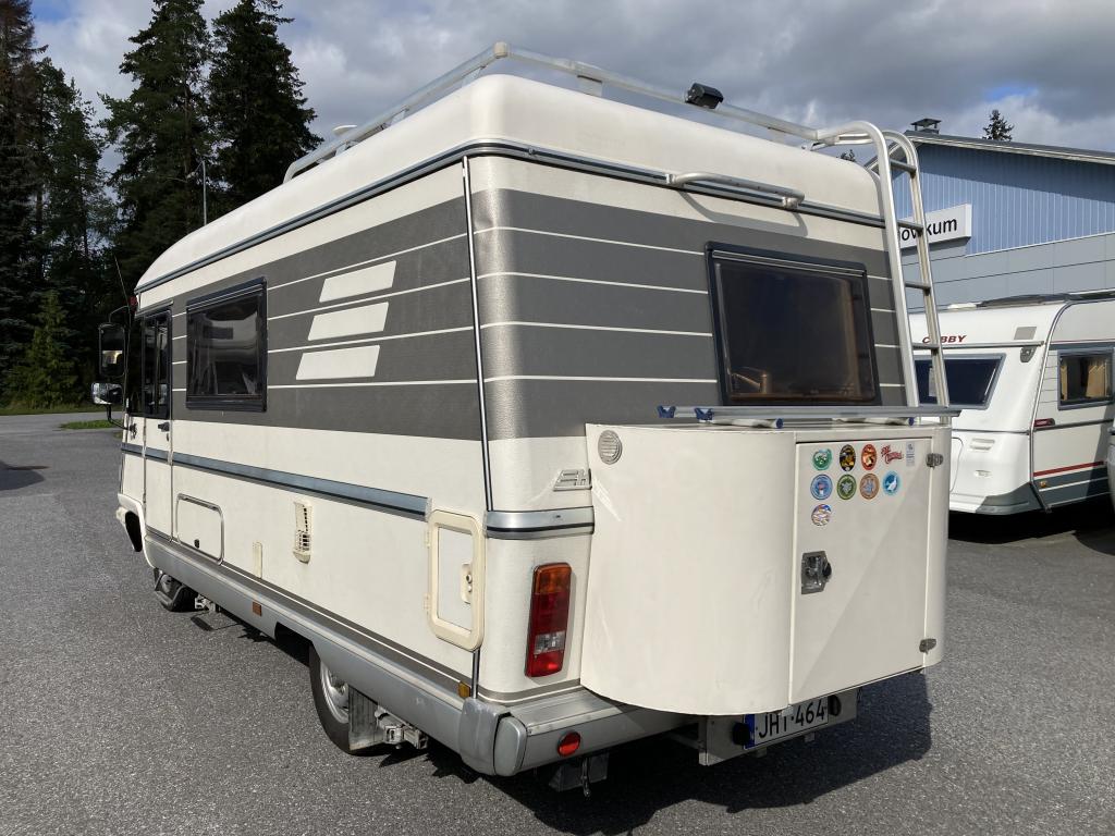 7:lle ja ohjaamon päällä alaslaskettava parivuode. Takavetoinen automaatti Mese alustana.