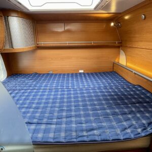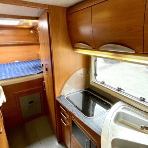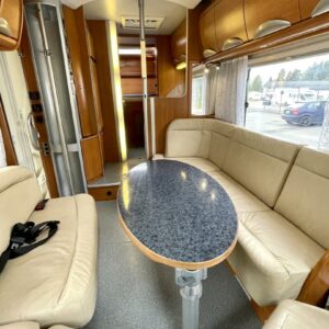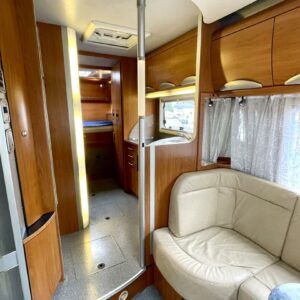 Pohjaratkaisussa takana iso poikittainen parivuode. Keskellä WC/kylpyhuonetilat ja keittiö, sekä runsaasti säilytystilaa. Edessä iso pöytäryhmä minne kääntyy lisäksi etuistuimet osaksi pöytäryhmää. Pitkällä sohvalla makuupaikka yhdelle henkilölle. Ohjaamon päällä alaslaskettava vuode kahdelle henkilölle.
