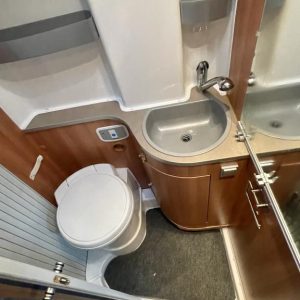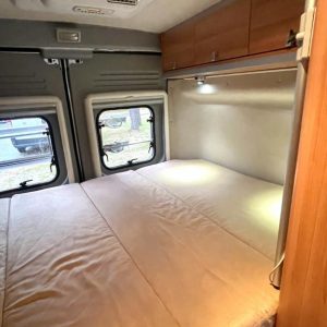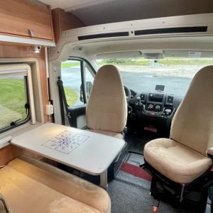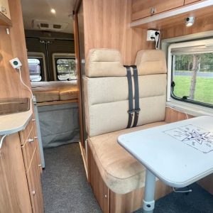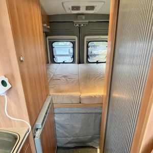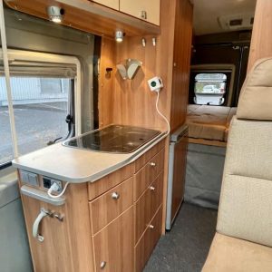 Pohjaratkaisussa edessä sohvaryhmä ja kääntyvät etuistuimet. Keskiosassa keittiö ja Wc- tila. Takaosassa poikittainen parivuode jonka alla säilytystilaa.