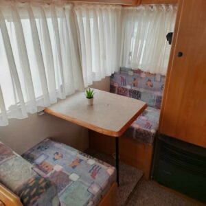 Pohjaratkaisussa edessä tilava alkoviparivuode. Keskellä vastakkainistuttava ruokailuryhmä josta saa tehtyä vuoteen ja sivukeittiö. Takana aamupalaryhmä, josta pedattavissa lisävuode, kylpyhuone ja kasetti WC.