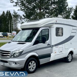 Huipputyylikäs Van S- mallisarjan Hymer miellyttävällä M- B Sprinterin alustalla ja automaattivaihteistolla. Alle 6.5 m pituus ja hiukan kapeampi kori tekevät autosta ketterän myös urbaanissa ympäristössä. Puskaparkkielämää on helpotettu lisävarustelulla, ja autosta löytyykin aurinkopaneeli, tupla- akut asunto- osaan ja invertteri.