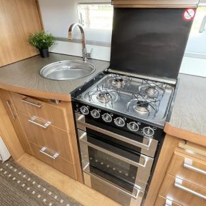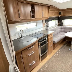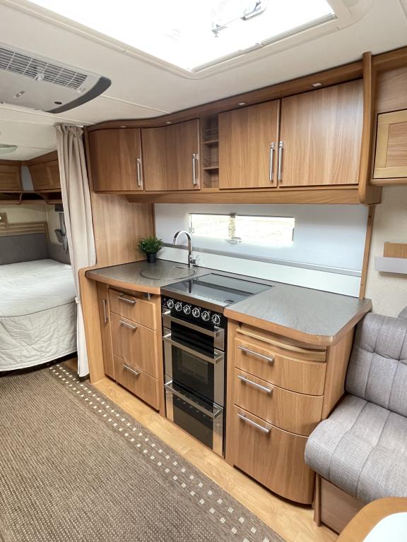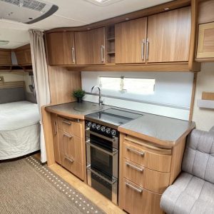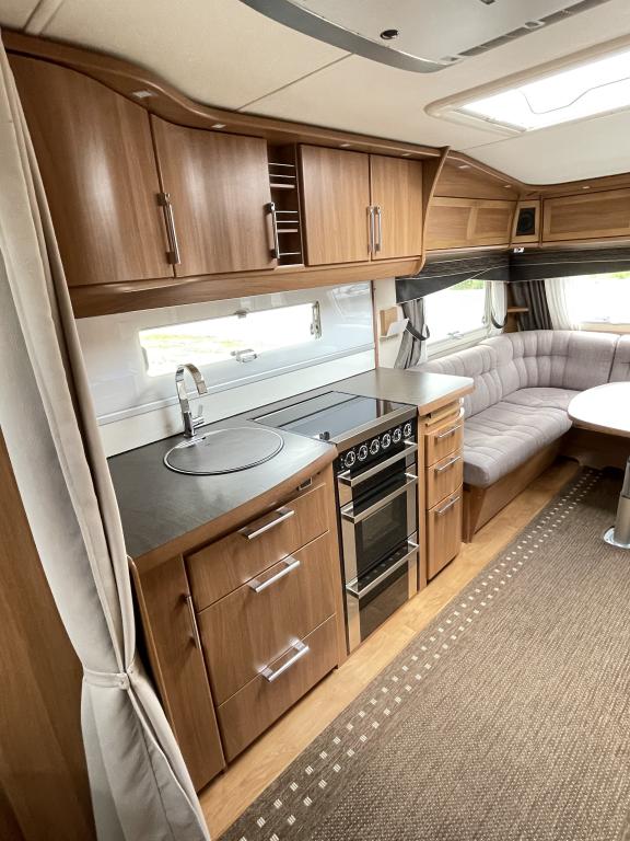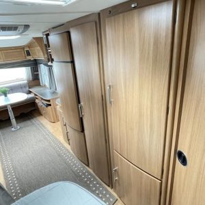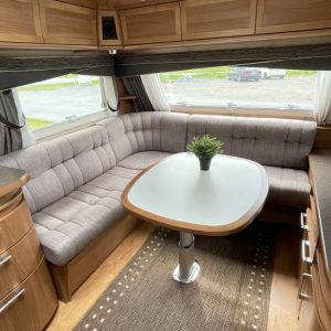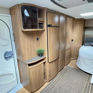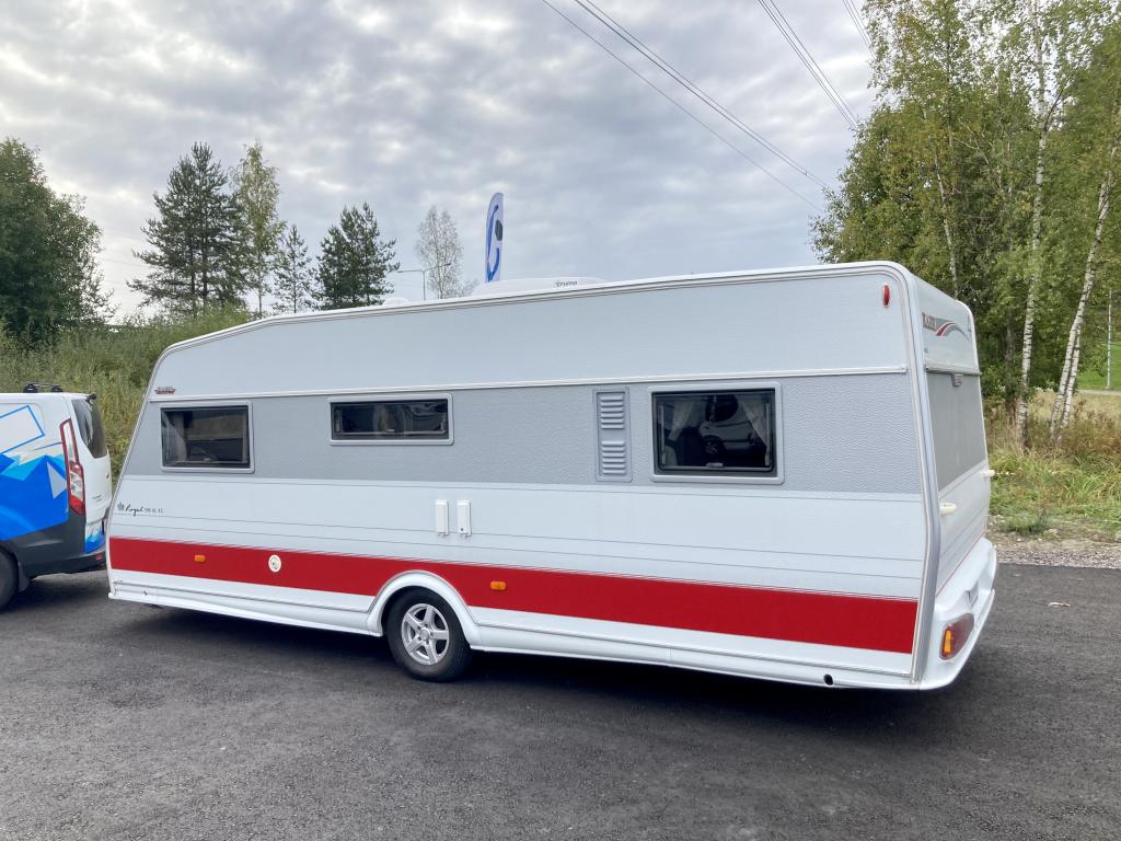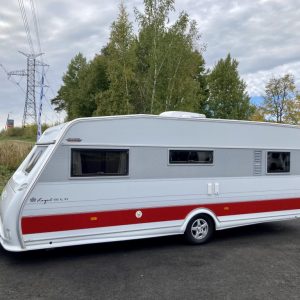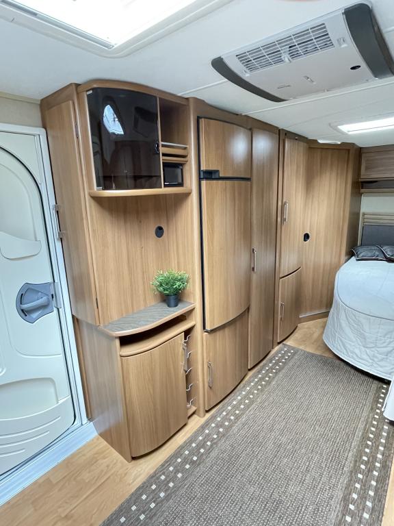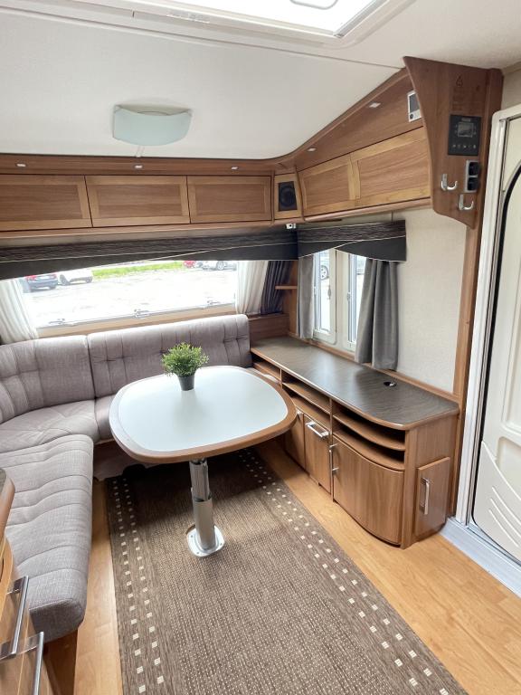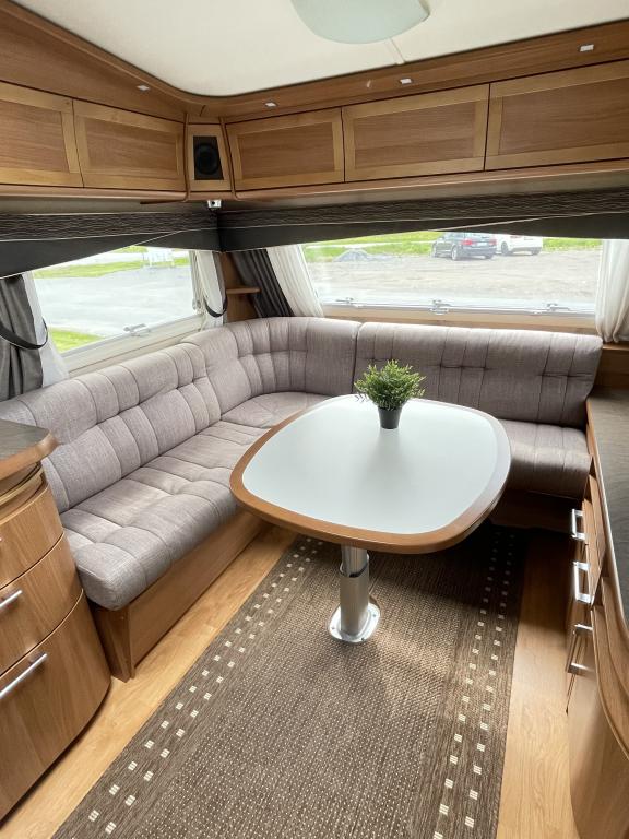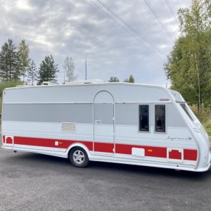 2,5 m kokonaisleveys tuo avaruutta koko vaunuun. Etuosasta löytyy viihtyisä pöytäryhmä, vaunun takaosasta muhkea parivuode ja pesuhuone. Keittö on varustettu isolla jääkaappi- pakastimella sekä kaasu- uunilla. Runsaasti säilytystilaa löytyy yläkaappien lisäksi kahdesta korkeasta vaatekaapista.