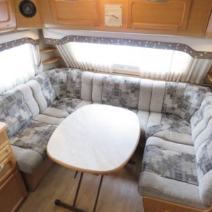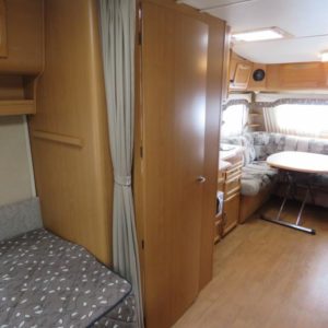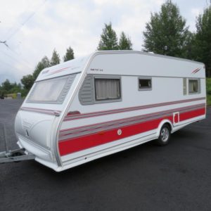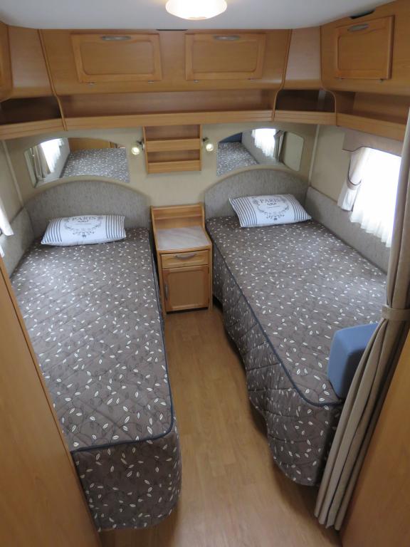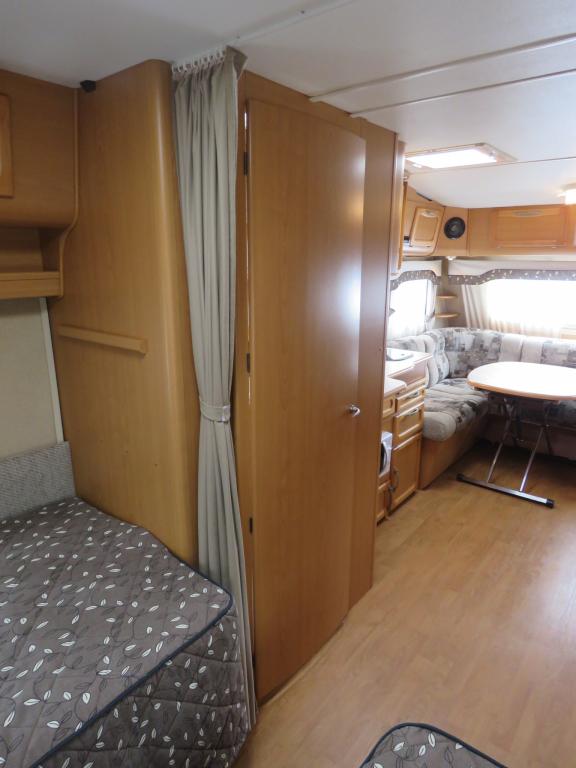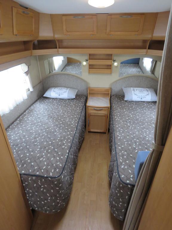 Lämmin ja laadukas matkavaunu erillisvuoteilla.