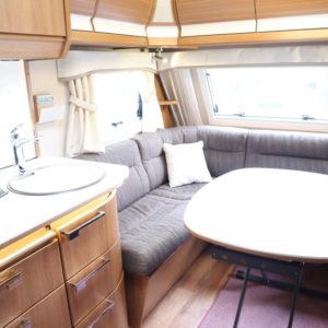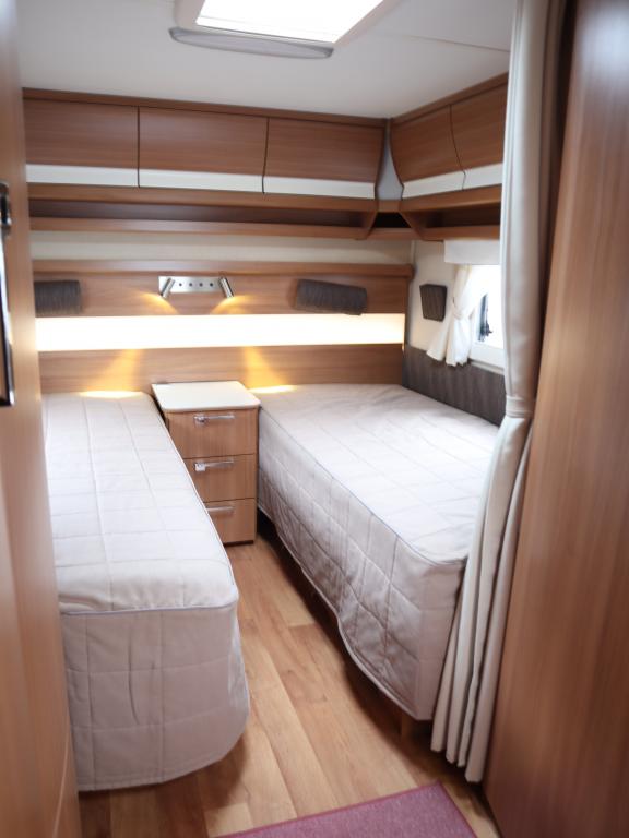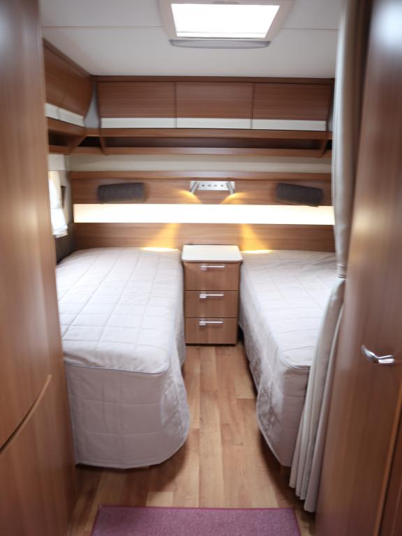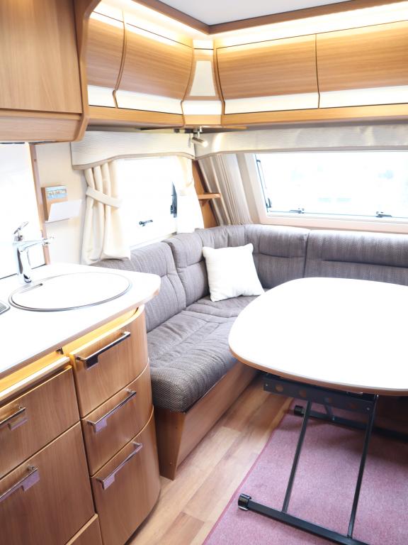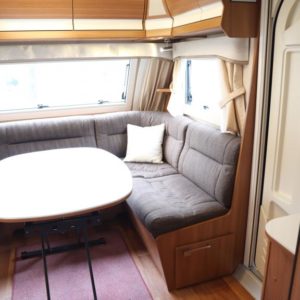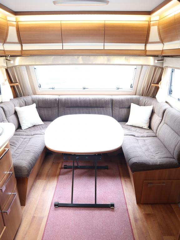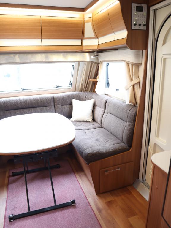 Vaunun takaosassa mukavat erillisvuoteet, edessä viihtyisä U- ryhmä.