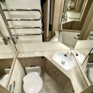 Alde, Nestekiertolämmitys, Lattialämmitys (nestekierto), Erikoisvanteet, Erillisvuoteet, Ilmastointi: Automaattinen, Kasettiverhot, Kasetti WC, Jääkaappi, Kattoluukku, Lattialämmitys, Liesi, Lämminvesiboileri, Markiisi, Pesuallas, Pakastelokero, Suihku, Sähköpatruuna, Tukijalat, Aurinkopaneeli, Eristetty harmaavesisäiliö, Lattiamatot asunto-osassa, Radio, TV-antenni tai lautasantenni, kwh-mittari, liesituuletin, kaasun ulosotto, televisioteline, Asuinosan hyttysovi/verho